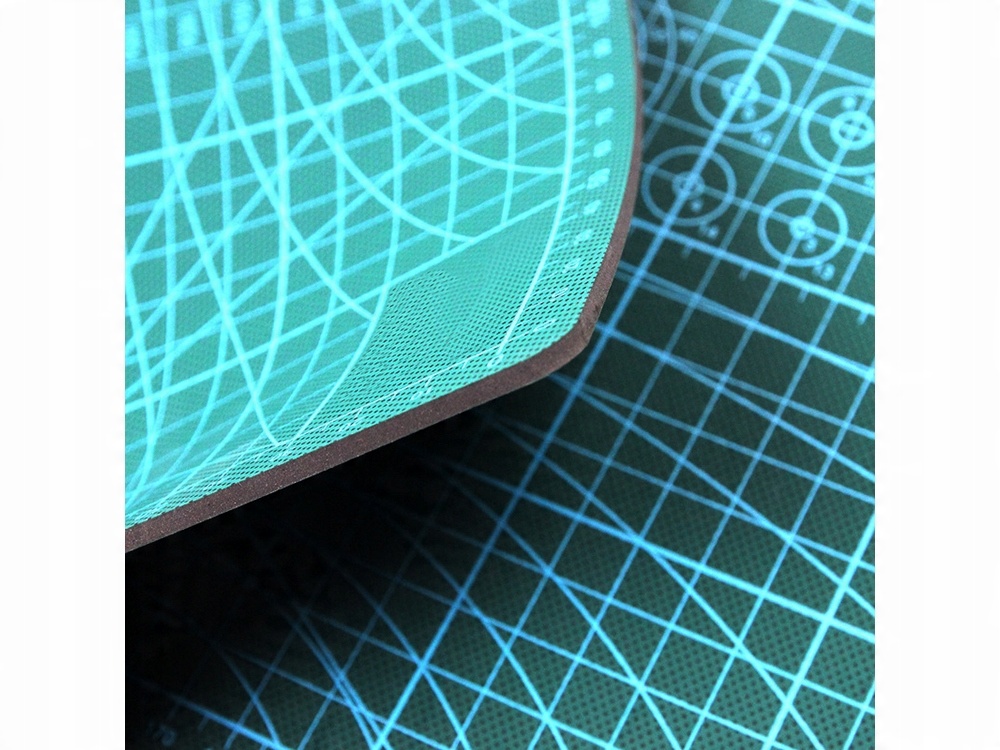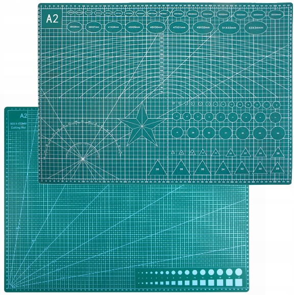 після розрізу все ще залишається гладким. має шар з обох боків, на яких було надруковано сантиметрову шкалу вертикально та горизонтальні, кути, кути, паралельні лінії та фігури.