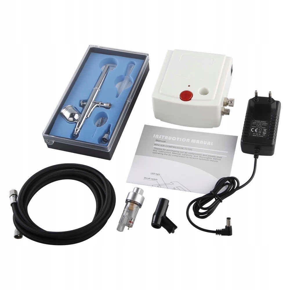 • Вміст набору: аерограф, компресор, різні аксесуари для чищення та обслуговування, тримач на 360°, повітряний фільтр