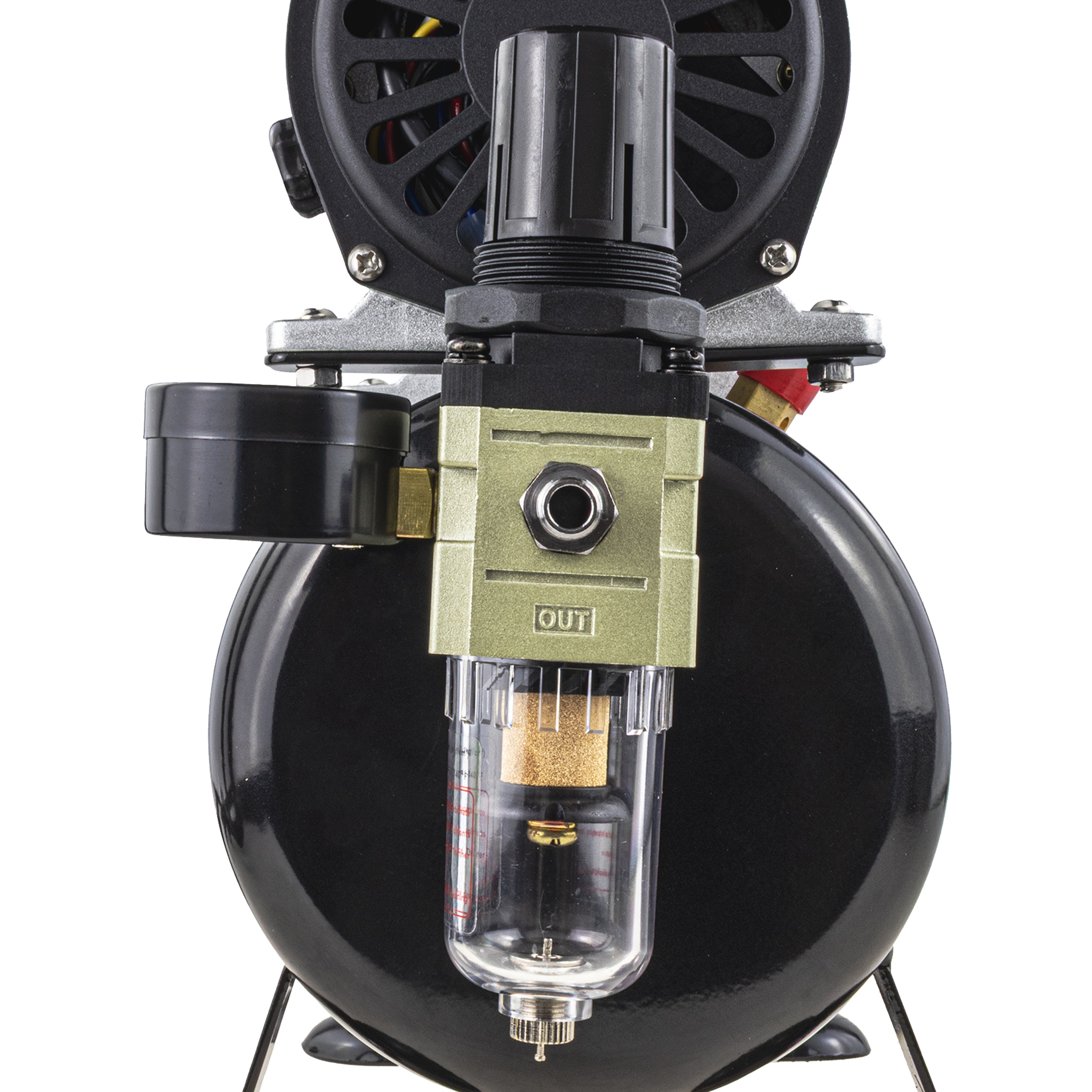 КОМПРЕСОР ДЛЯ АЕРОГРАФІЧНОГО МОДЕЛЮВАННЯ З ЦИЛІНДРОМ ОБ'ЄМОМ 3 Л, БЕЗМАСЛИНИМ РЕДУКТОРОМ, ЗНЕВОДНИКОМ