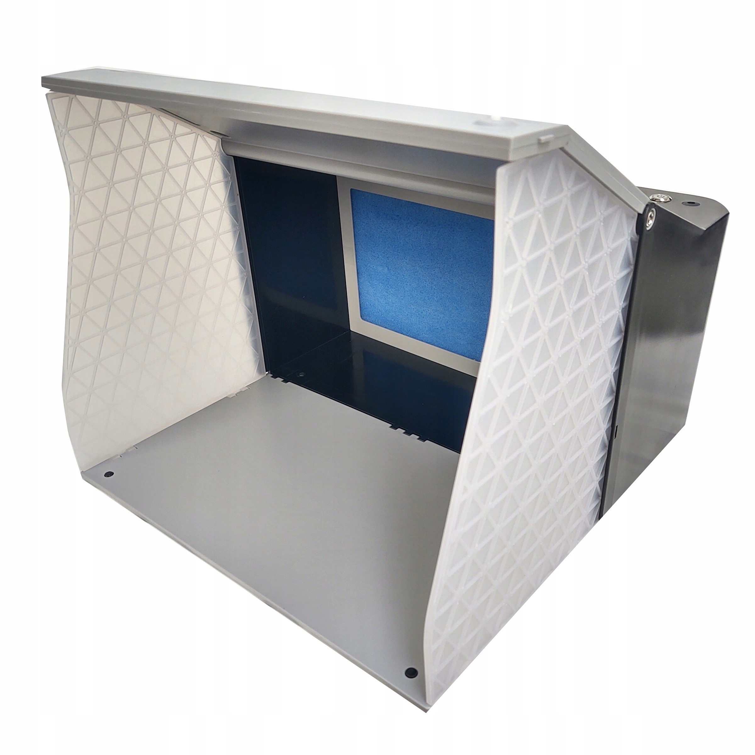 професійно зроблена фарбування кабіни, розроблена для фарбування елементів міні -лаками пістолетів та аерографів. Він має обертову платформу, яка дозволяє зручно малювати предмети, не забруднюючи.