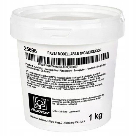 цукрова маса відомої італійської компанії modecor -це продукт для створення та моделювання фігур, квітів, персонажів та всіх тривимірних прикрас на тортах та інших хлібобулочних виробах.