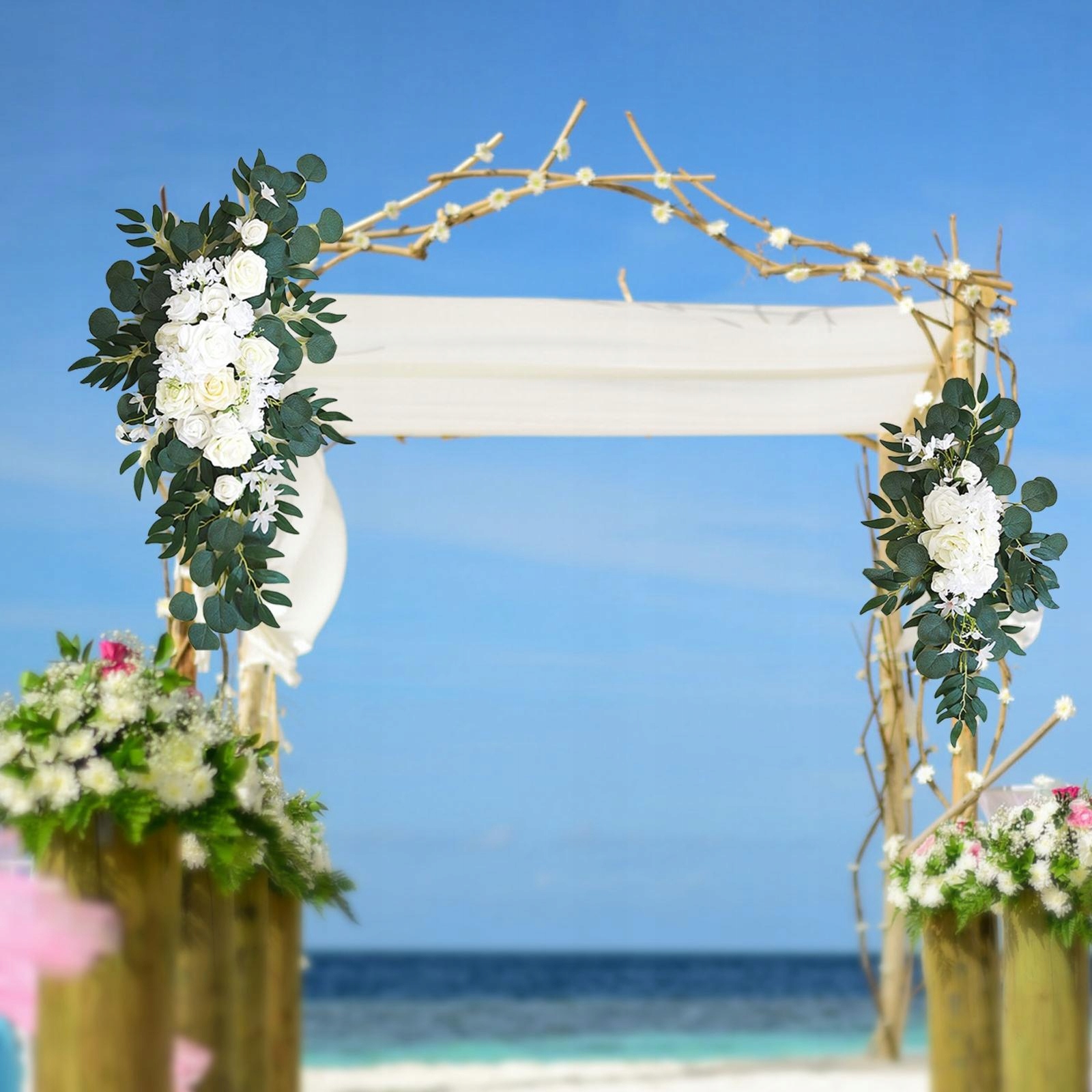 Весільні арочні квіти: Квіти весільної дуги реалістичні, прикрашені листям евкаліпта, для прикраси весільної арки.