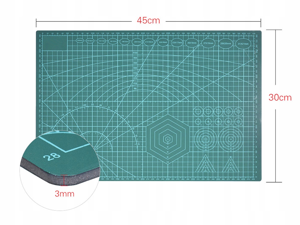 ➡️ Вбудовані напрямні: сантиметрові лінії та кути допомагають точно вимірювати та вирізати, ідеально підходять для вирізання геометричних фігур.