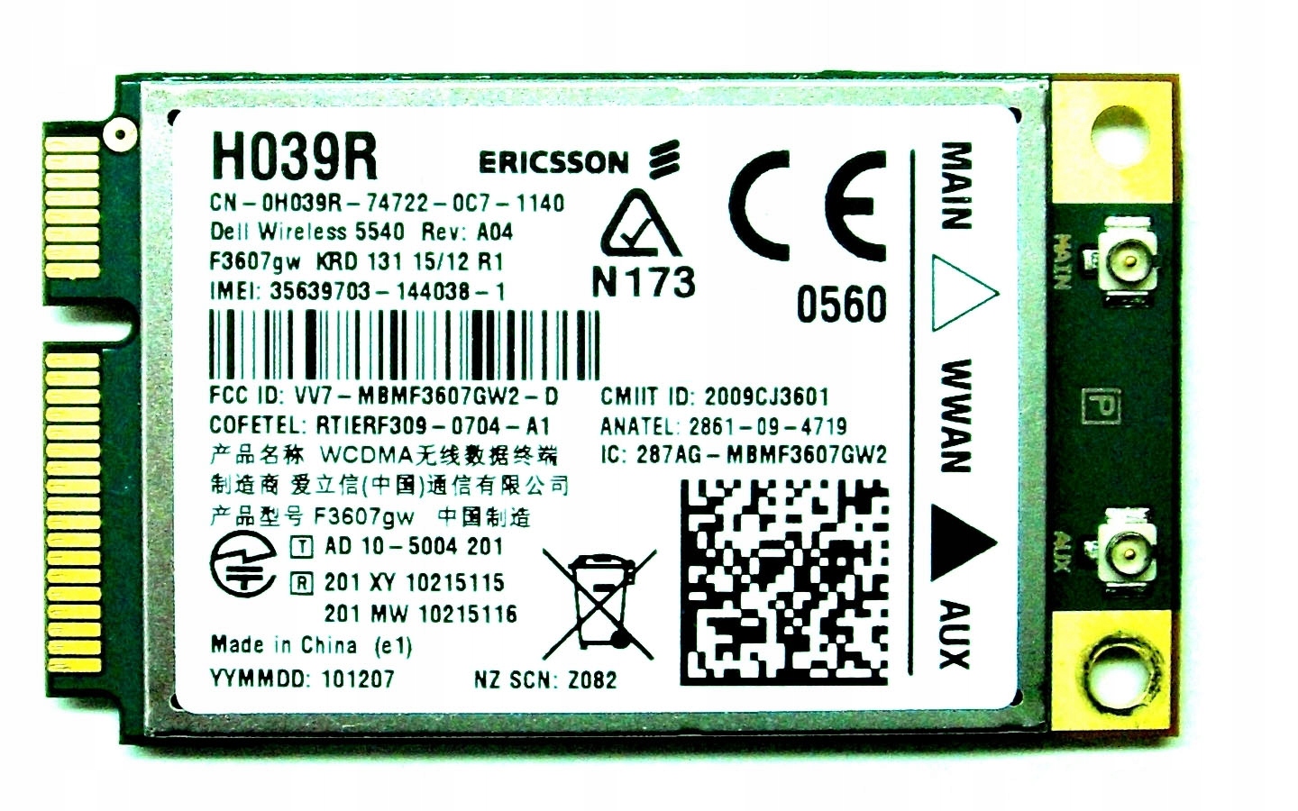 Modem WWAN 3G Wireless 5540 0H039R F3607gw do laptopa Dell 5410,E6400,E6410
