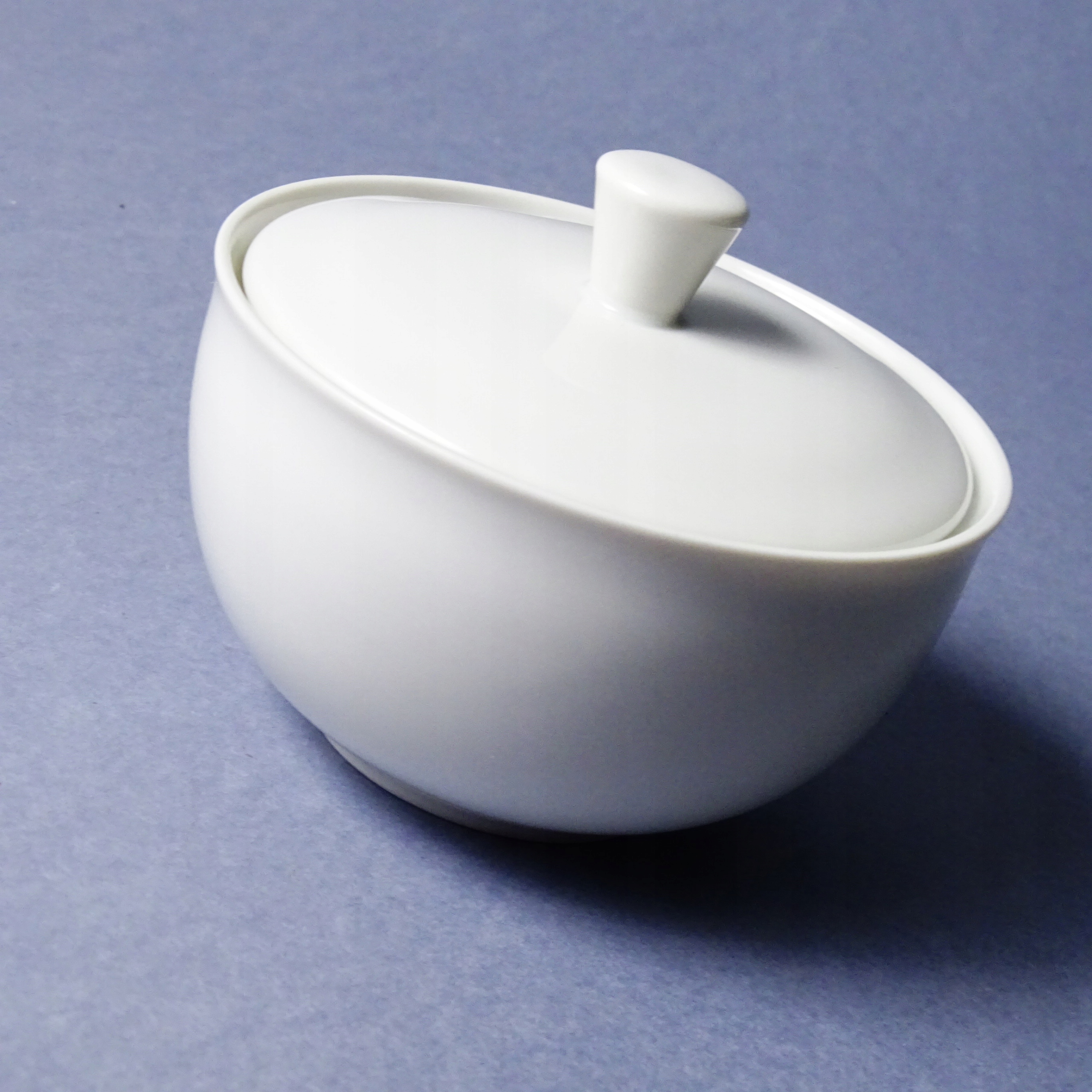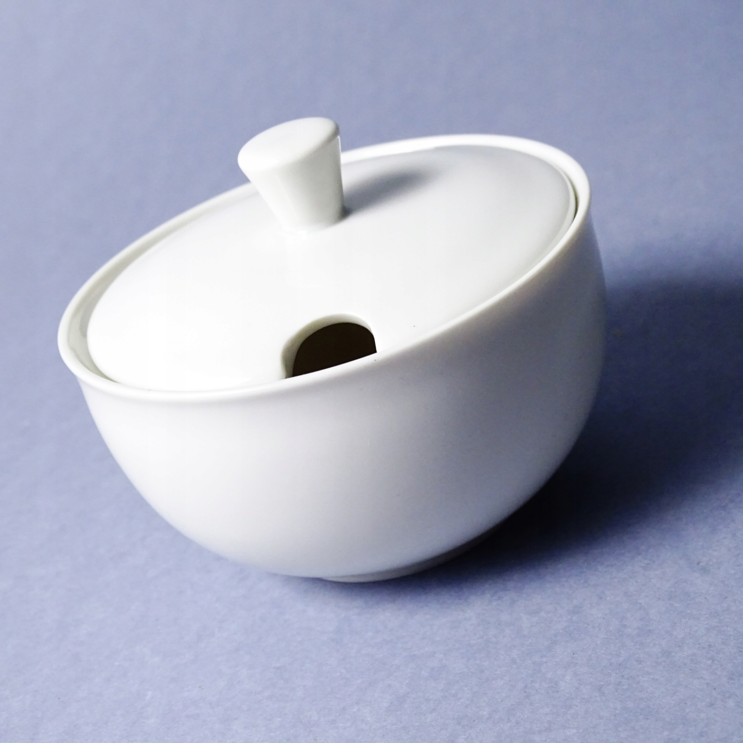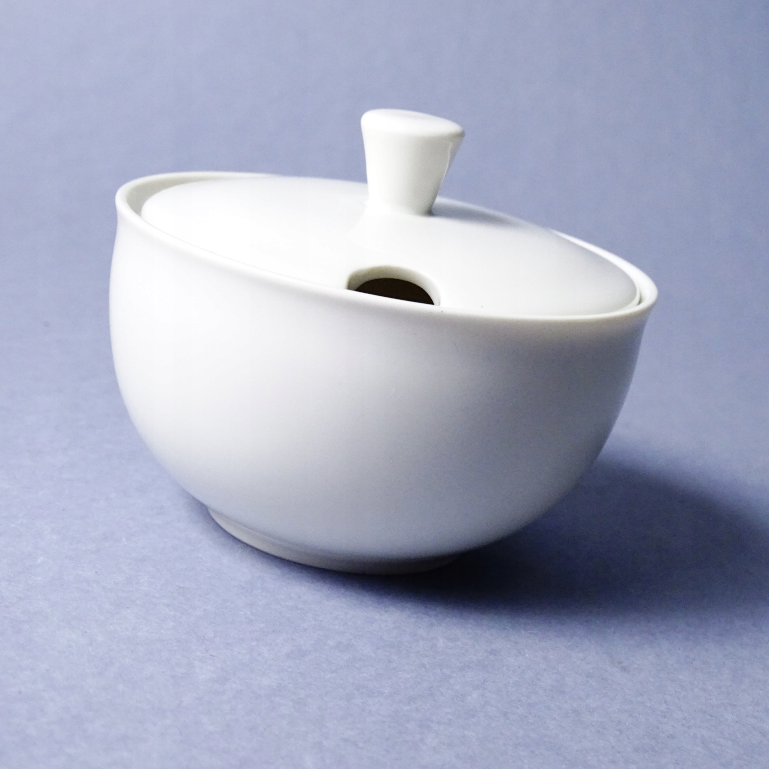 Оригінальна біла модерністська цукорниця з білої порцеляни. Німеччина / середина 20 століття.