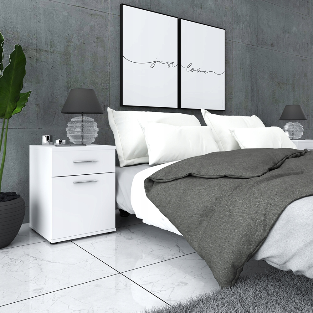 Модна тумбочка, білий матовий, з ящиком і дверцятами | СПАЛЬНЯ