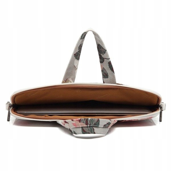 Прикрашений стриманим квітковим візерунком, що надає йому жіночного стилю. Сумка характеризується високим рівнем захисту та практичністю. Внутрішня частина чохла обшита товстим шаром м’якого матеріалу, який утримує та захищає пристрій під час ударів.