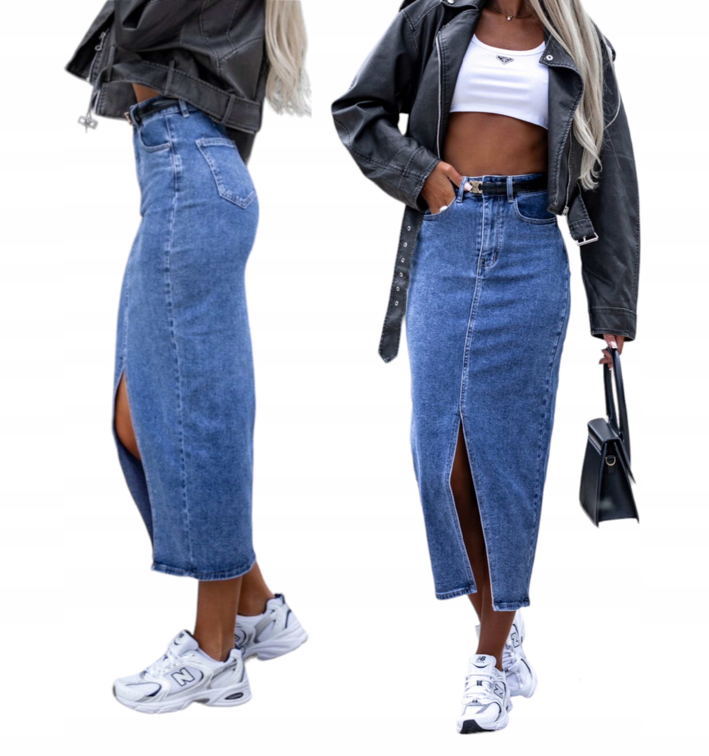 оригінальна спідниця MIDI - це хіт цього сезону! Він буде ідеальним для любителів останніх тенденцій. Спідниця надає кожному стилізації модного персонажа. Він ідеально поєднується з типовими випадковими добавками, а також більш досконалими. Ця модель була виготовлена з еластичної джинсової тканини, яка забезпечить максимальний комфорт при носінні.