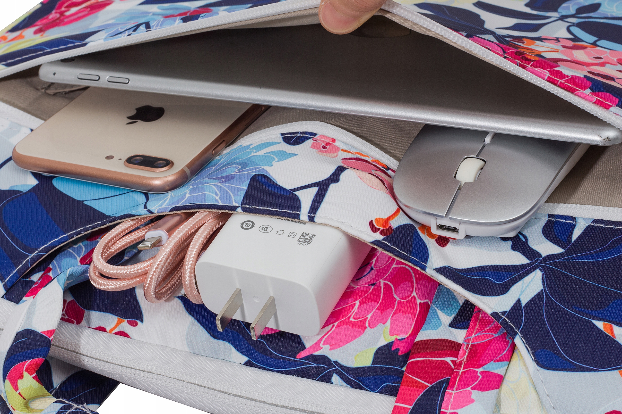 - 1x велика задня кишеня плюс бічні кишені всередині, наприклад, для мишки та зарядного пристрою