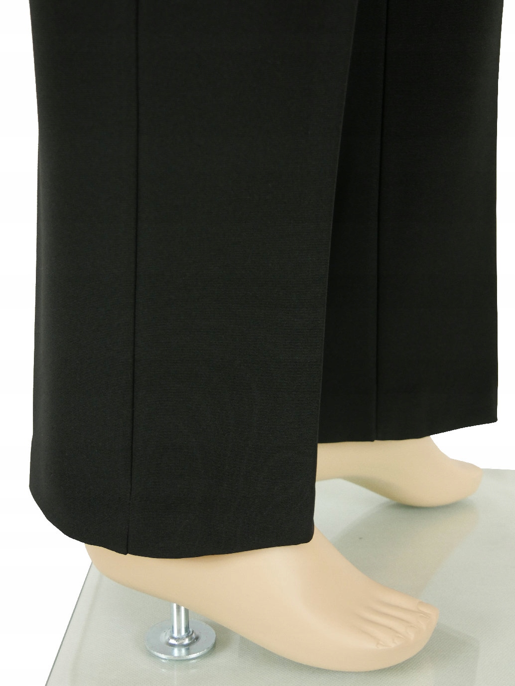 Штани класичного крою зі складкою, пояс з широкою вшитою жорсткою гумкою для будь-якого регулювання, довгі прямі штанини, звужені донизу, дві формуючі виточки ззаду та спереду.