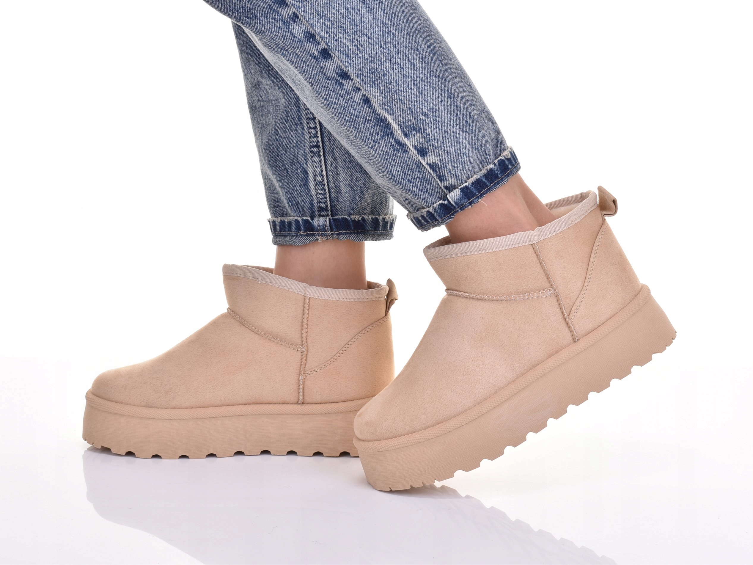 MODNE BOTKI NA PLATFORMIE OCIEPLONE FUTERKIEM GRUBA PODESZWA BEŻOWE