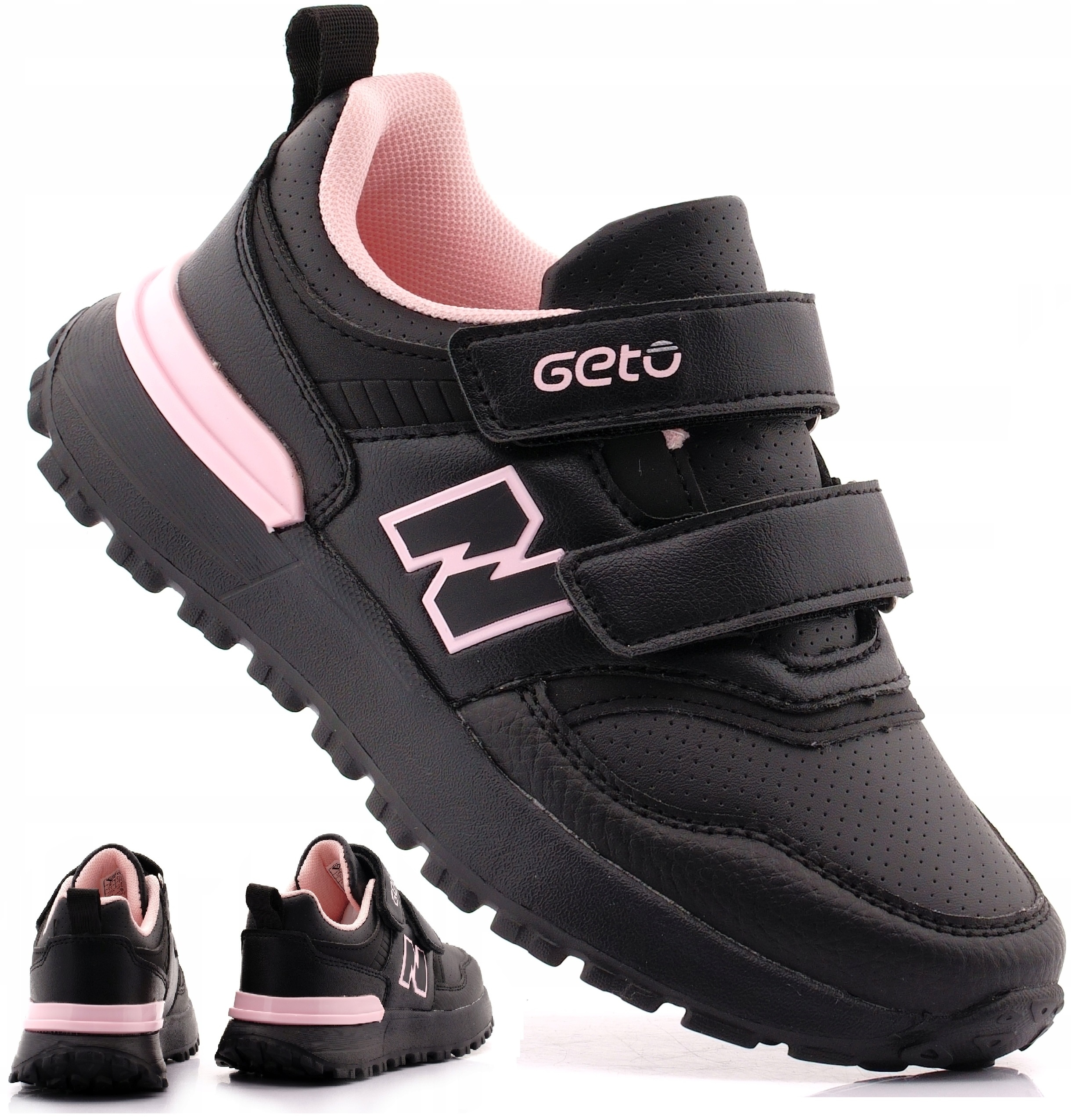 Модне спортивне взуття дитячі кросівки липучки шкіри чорний рожевий R35
