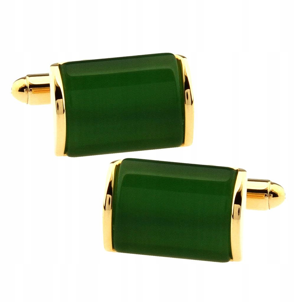 Modne zielone spinki do mankietów koszuli z klejnotami