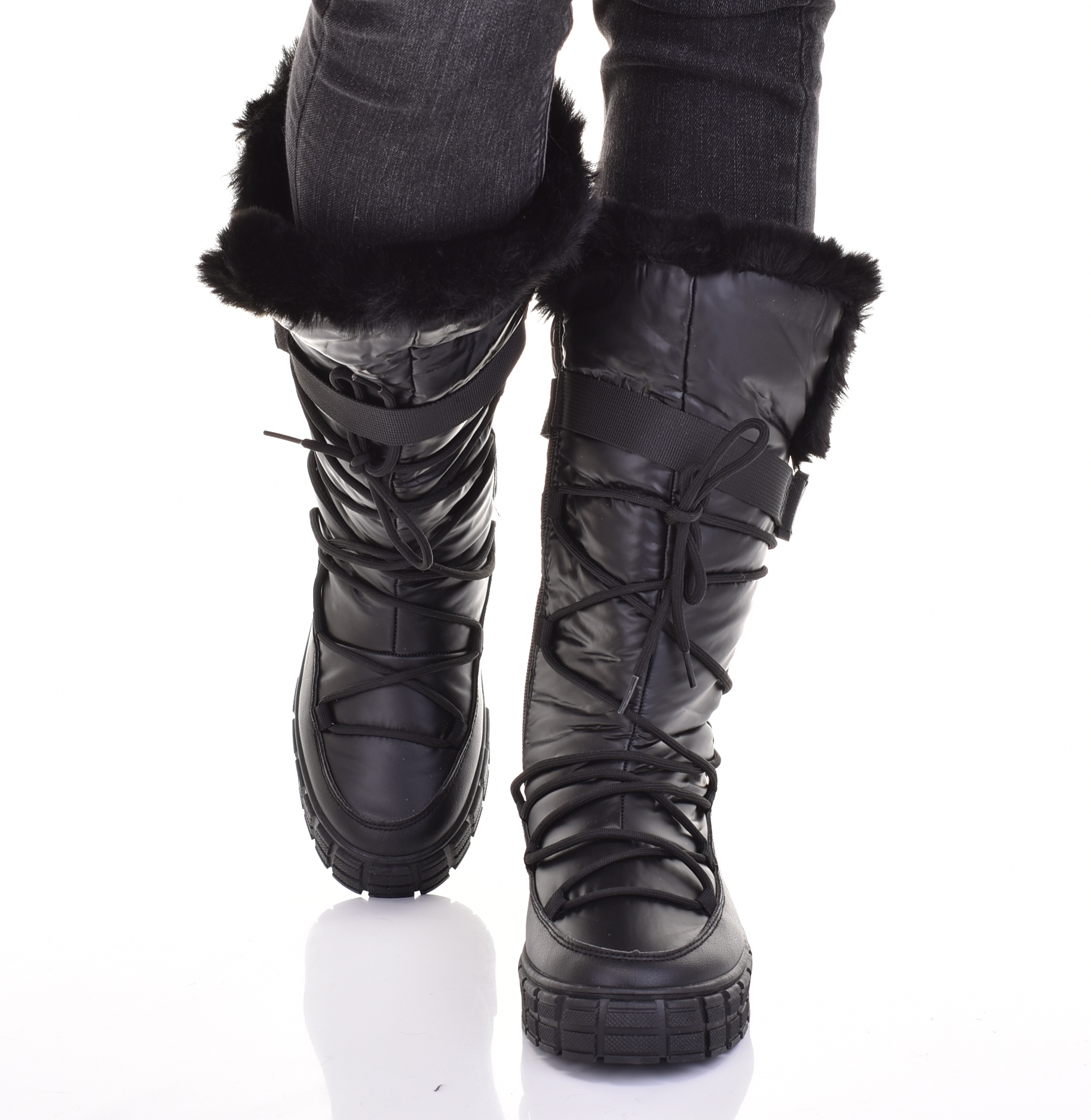 Висока щиколотка привертає увагу завдяки оздобленні з густого хутра. Взуття має блискавку для зручного надягання та шнурки, які регулюють верх для максимального захисту від снігу та морозу.
