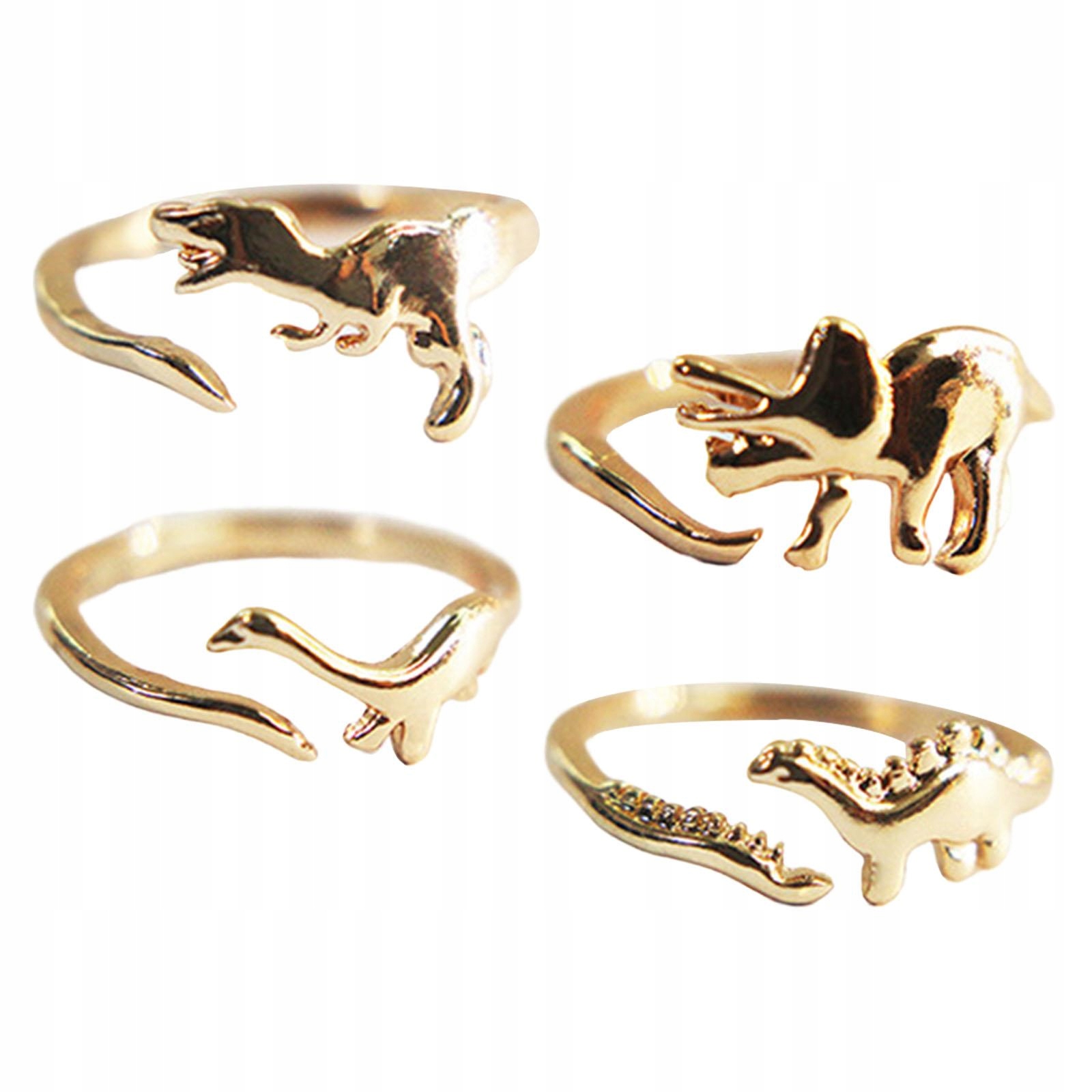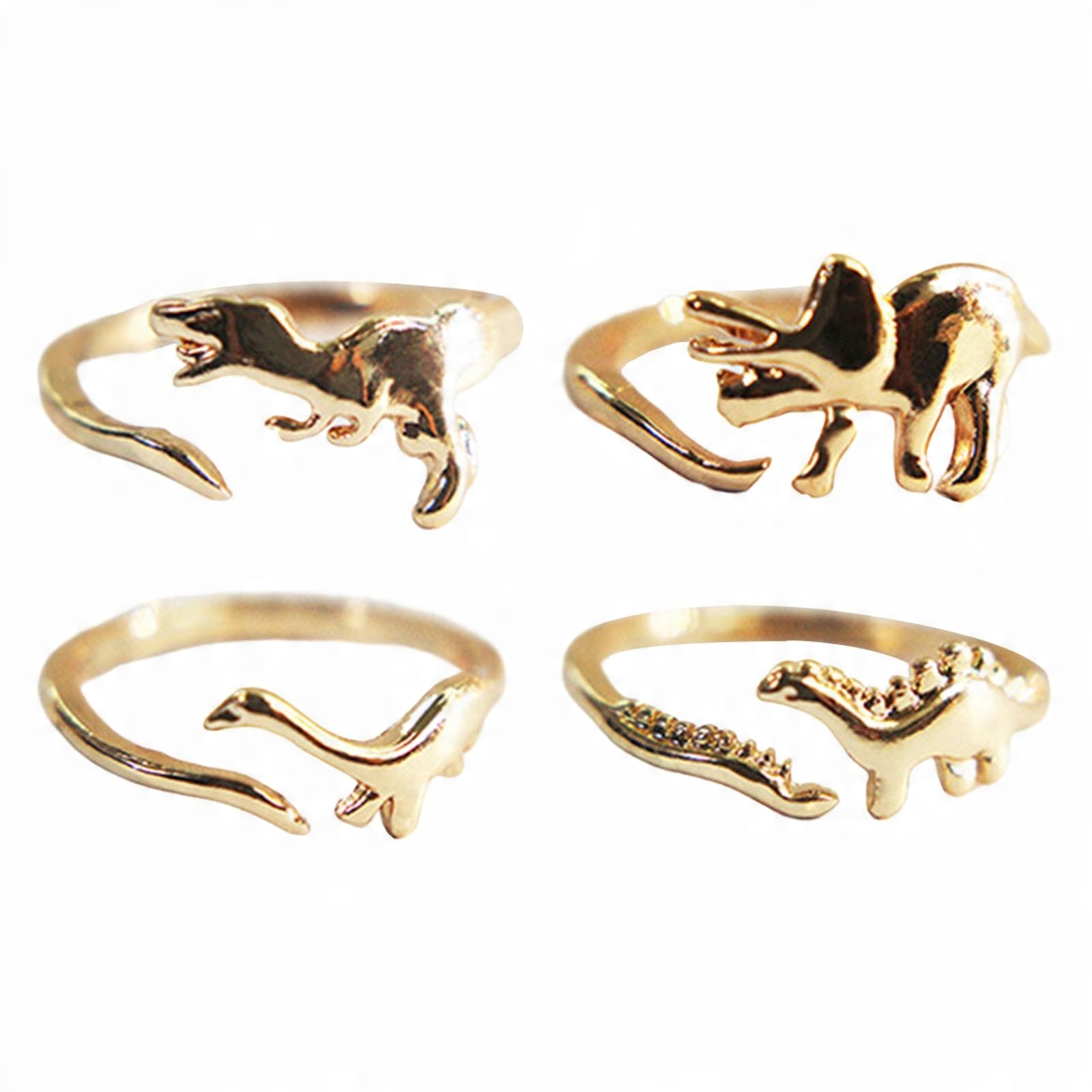 Модні кільця зі сплаву динозаврів із 4 предметів, золоті