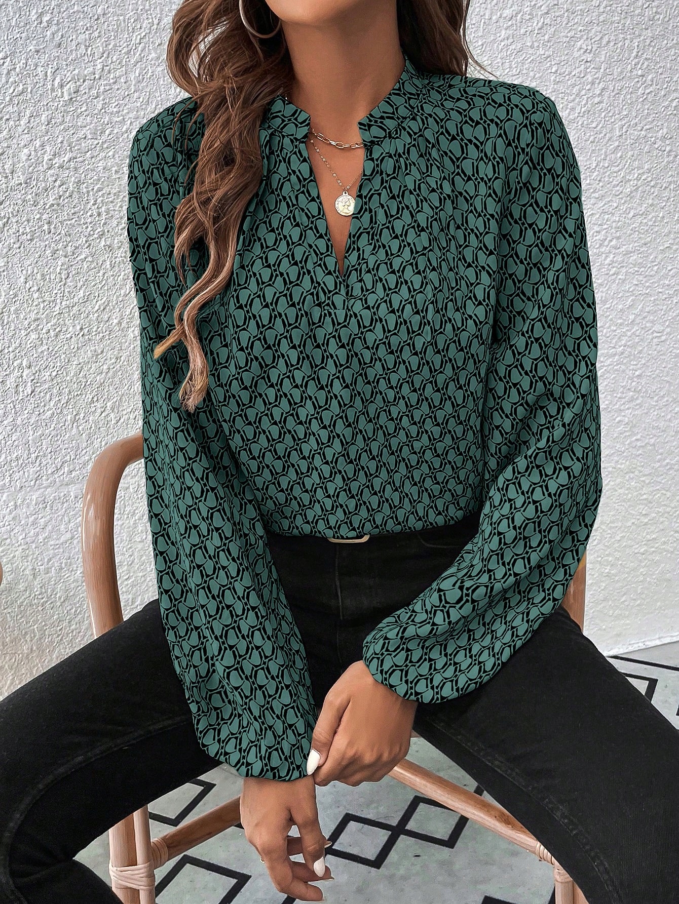 Виготовлений з м'якого, приємного до сенсорного матеріалу, забезпечує комфорт цілий день. Довгі рукави додають клас і забезпечують тепло, а універсальний розріз блузки робить його відповідним багатьом стилям.