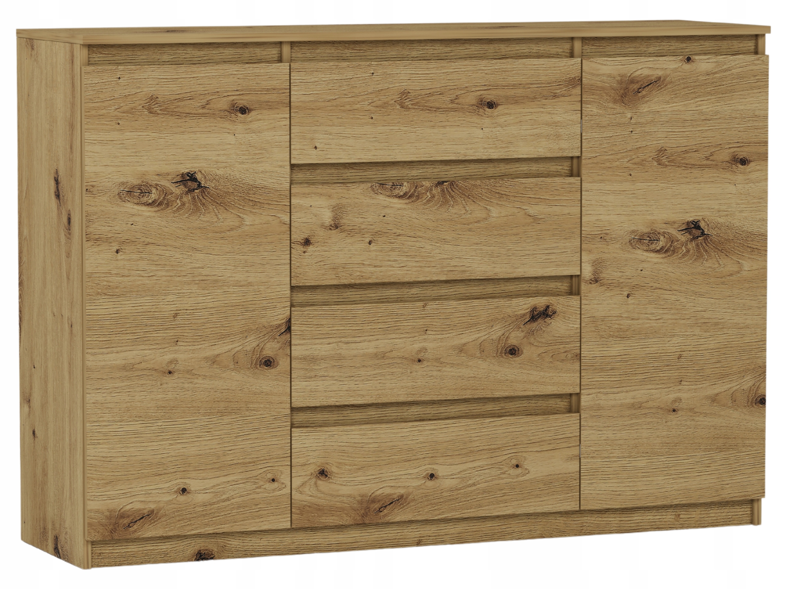 Стильний комод з колекції MODERN, створений для людей, які цінують сучасний стиль і елегантність. Оновить інтер'єр кожної спальні та вітальні. Дизайн мінімалістичний, але надійний і міцний. Завдяки фасадам ящиків без ручок, комод зручний у використанні. Ергономічні розміри комода надають свободу в облаштуванні кімнати.