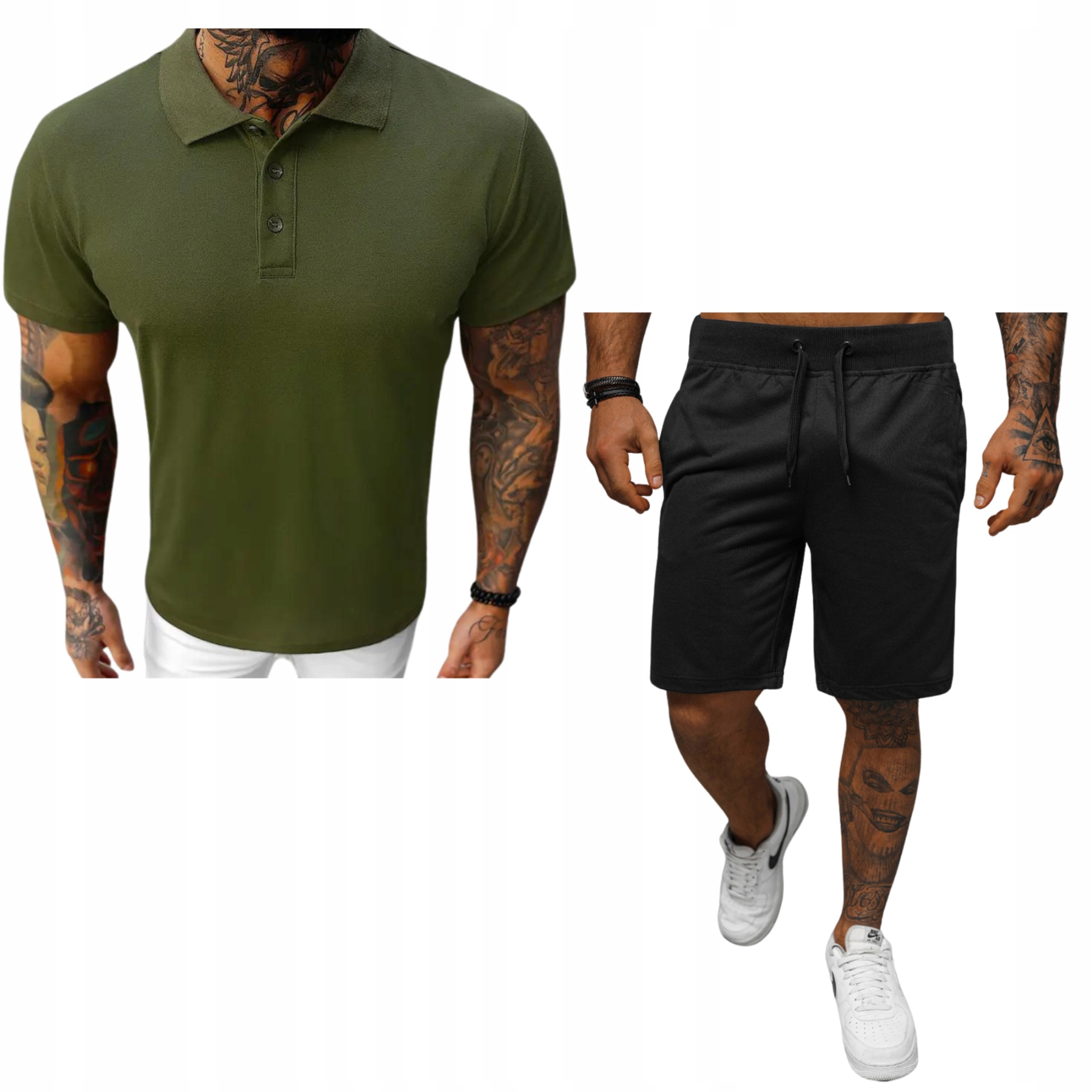✅ Модний дизайн - елегантна сорочка з поло Хакі та зручні шорти з чорного пота створюють стильний, сучасний набір для літа.