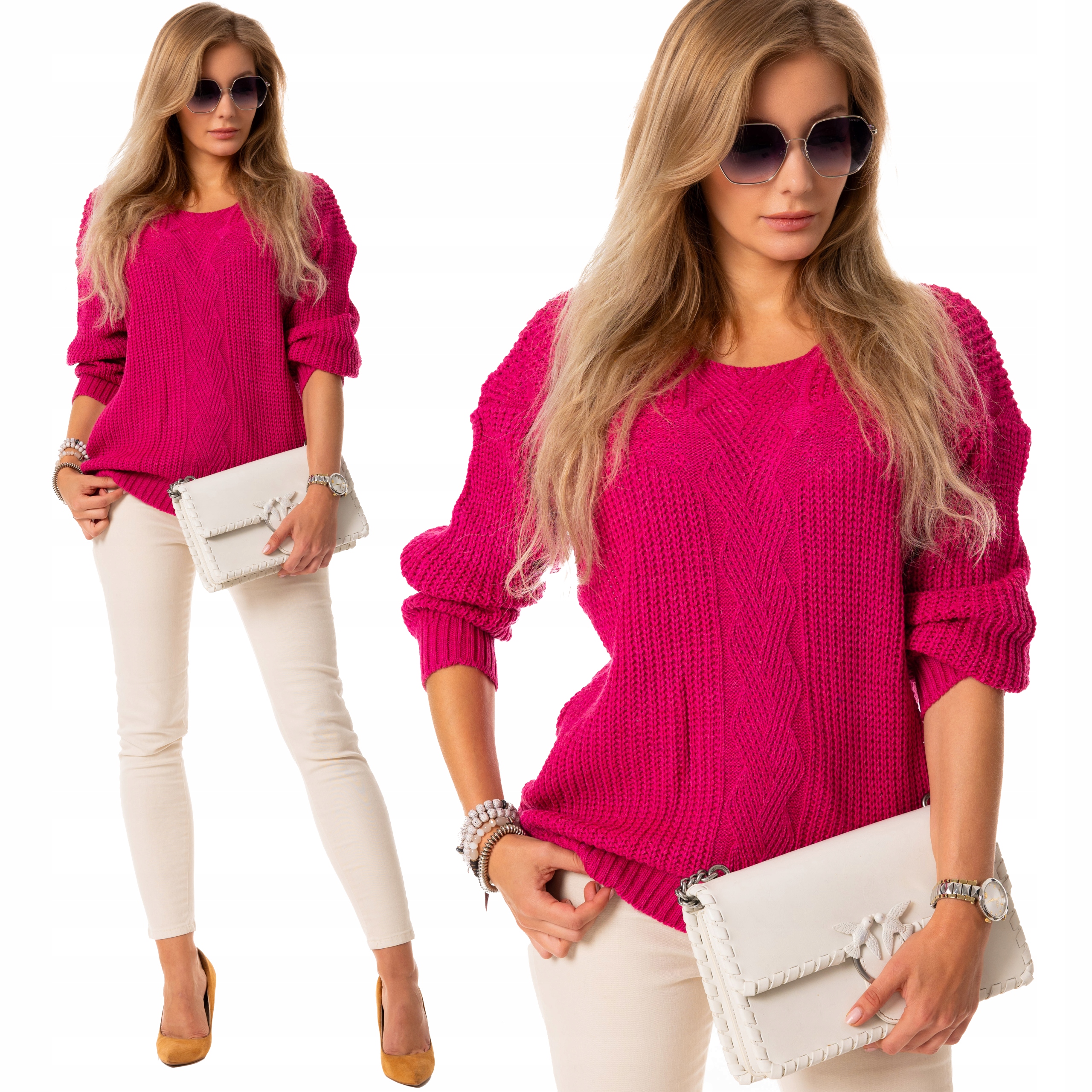 Модний СВЕТР. Светр з плетеною косою. Коса фуксія
