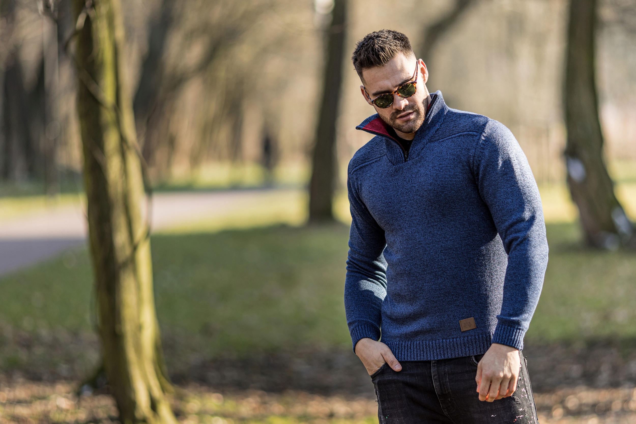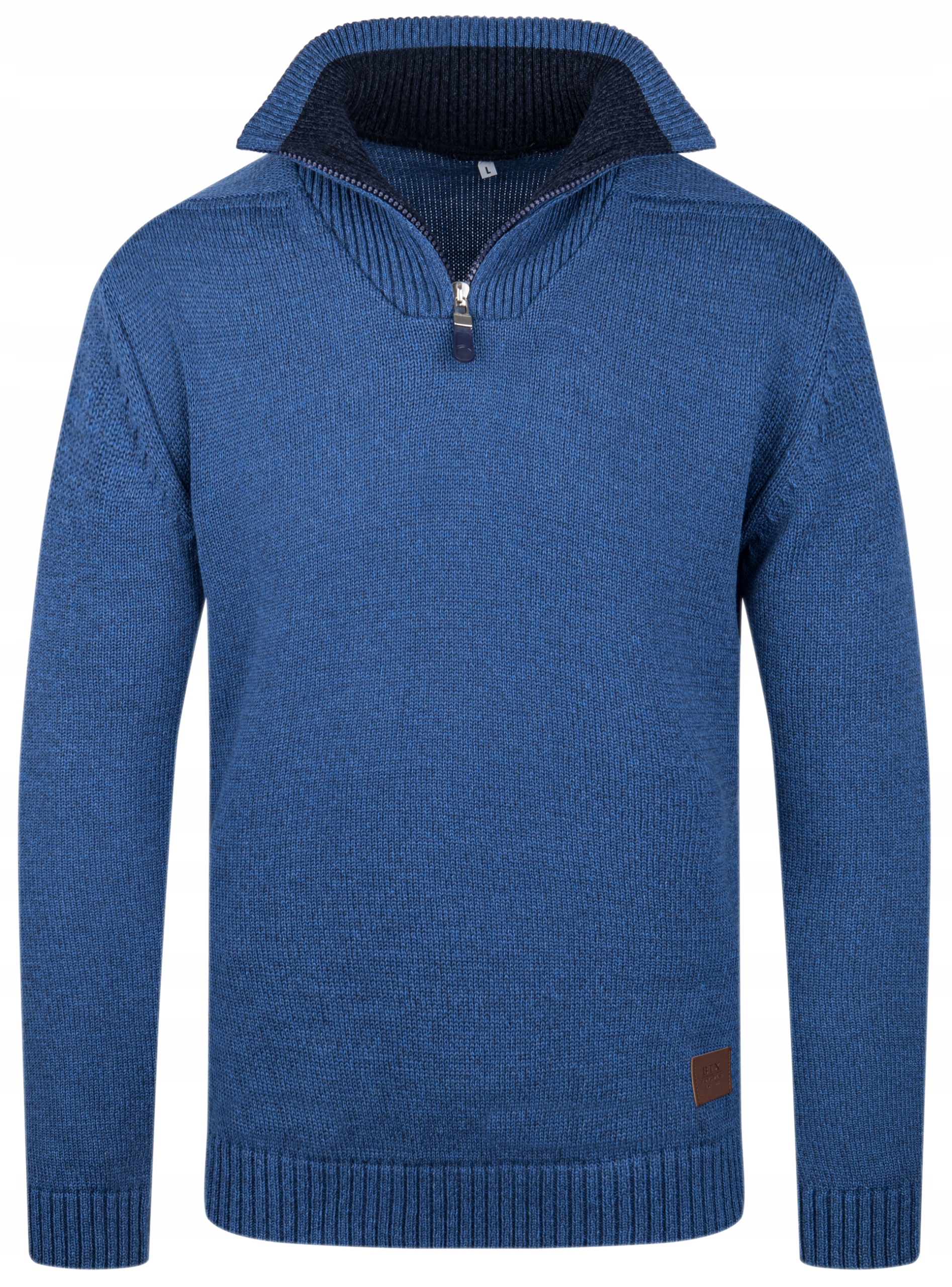 MODNY SWETER MĘSKI GOLF PÓŁZAMEK JEANSOWY
