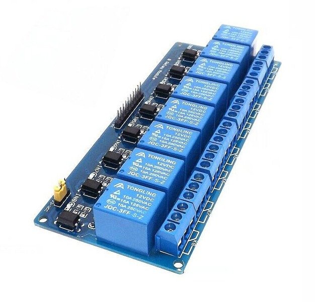 8-канальний модуль реле, який можна керувати мікроконтролером, наприклад Arduino. Модуль був оснащений світлодіодами, які сигналізують про роботу окремого реле.