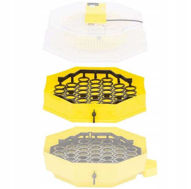 отвори мають діаметр близько 4 см . Це оптимальний розмір для кімнати курки, качки, фазанів та інших розмірів з подібними розмірами. Користувачі вже не змушені приділяти свій час їхній ручній ротації. Крім того, інкубаційні яйця більше не піддаються змінам температури, що виникає внаслідок необхідності видалення будинку Ibator 60. Поворот найчастіше проводиться двічі на день - як правило, вранці та ввечері. Продукт міцно виготовлений, довговічний, простий у чистці та безперечно сприяє щоденній роботі над інкубацією, він гарантує повне задоволення покупкою.