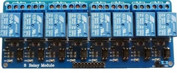 8-канальний релейний модуль, яким можна керувати за допомогою мікроконтролера, наприклад Arduino. Модуль оснащено світлодіодами, які вказують на роботу певного реле.