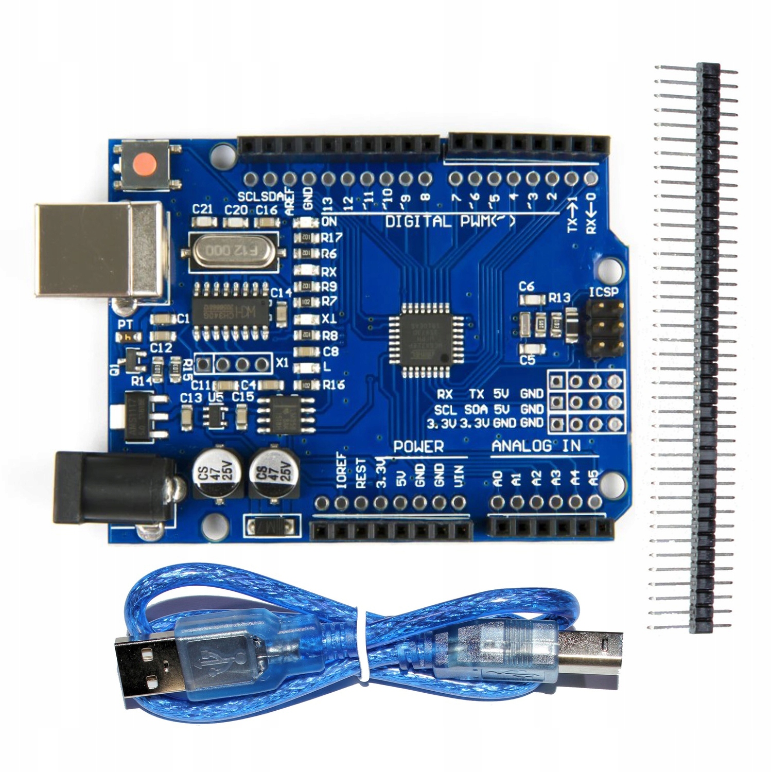 Наша високоякісна плата A2 з мікроконтролером ATMEL ATMEGA328 AU є ідеальним рішенням для проектів на основі Arduino UNO. У набір також входить USB-кабель і 40-кратна золота шпилька.