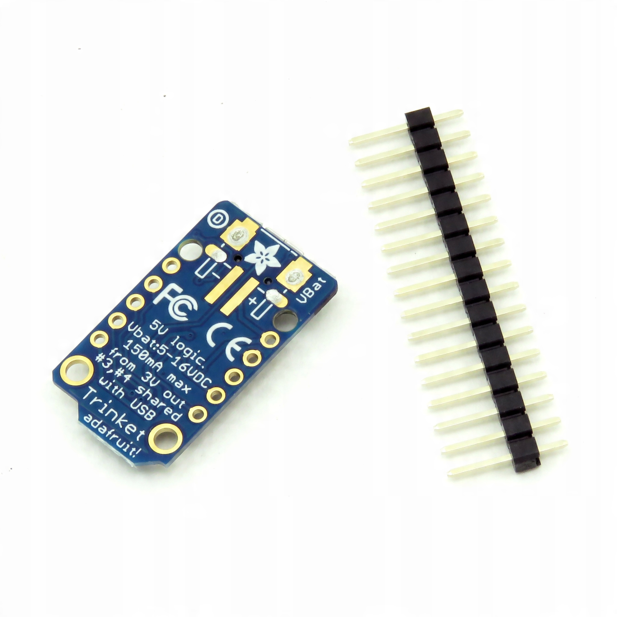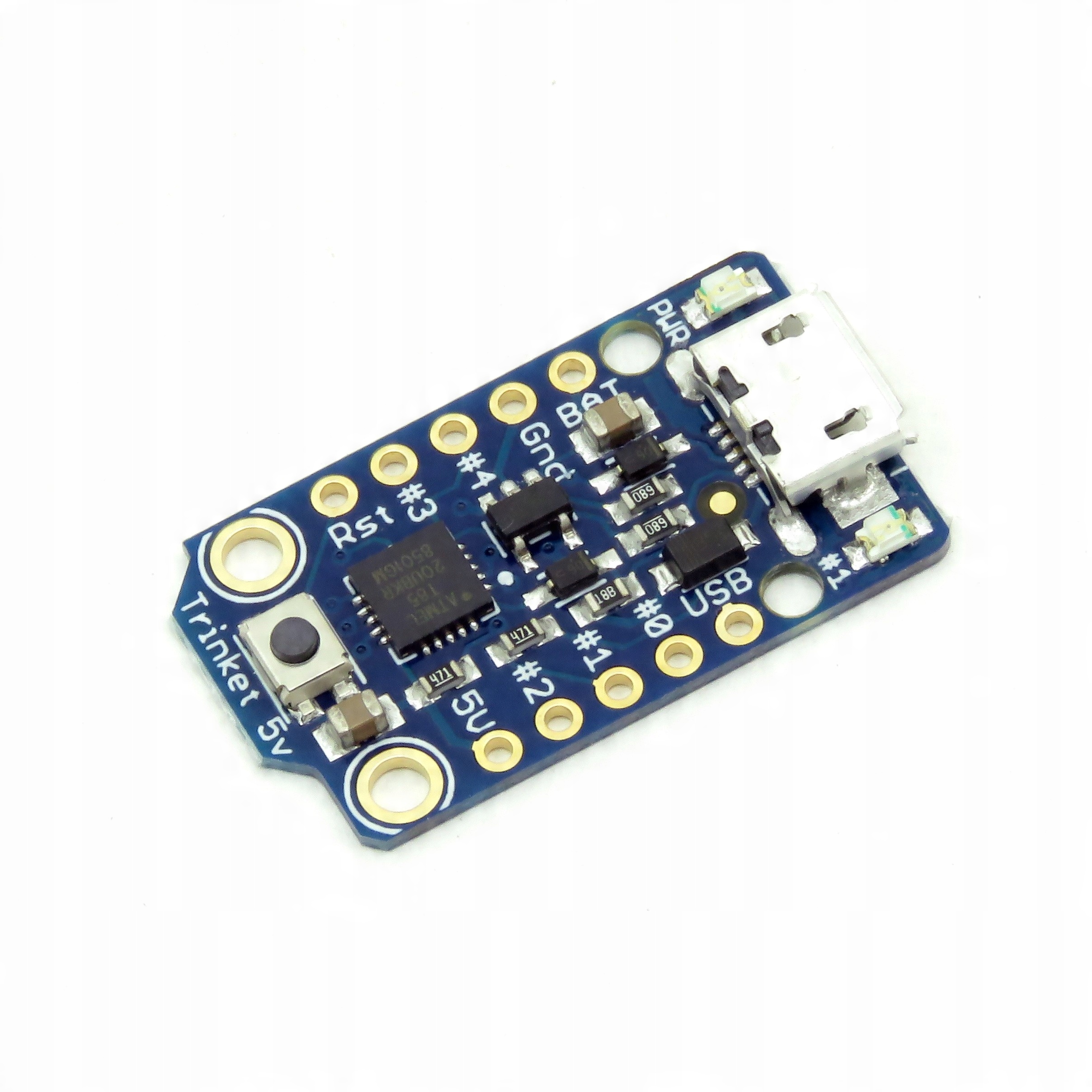 Це версія Trinket на 5 В. Існує 2 версії Trinket, 3 В і 5 В. Обидві працюють однаково, але мають різні логічні рівні напруги. Версія 3V може працювати лише на частоті 8 МГц. Версія 5 В може працювати на частоті 8 МГц або 16 МГц за програмним налаштуванням годинника.