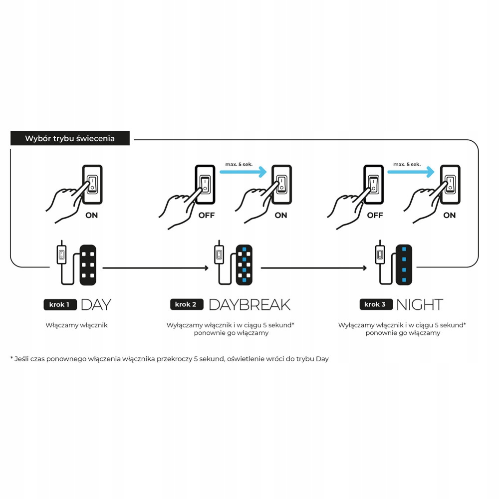 Освітлення може працювати в 3 режимах: