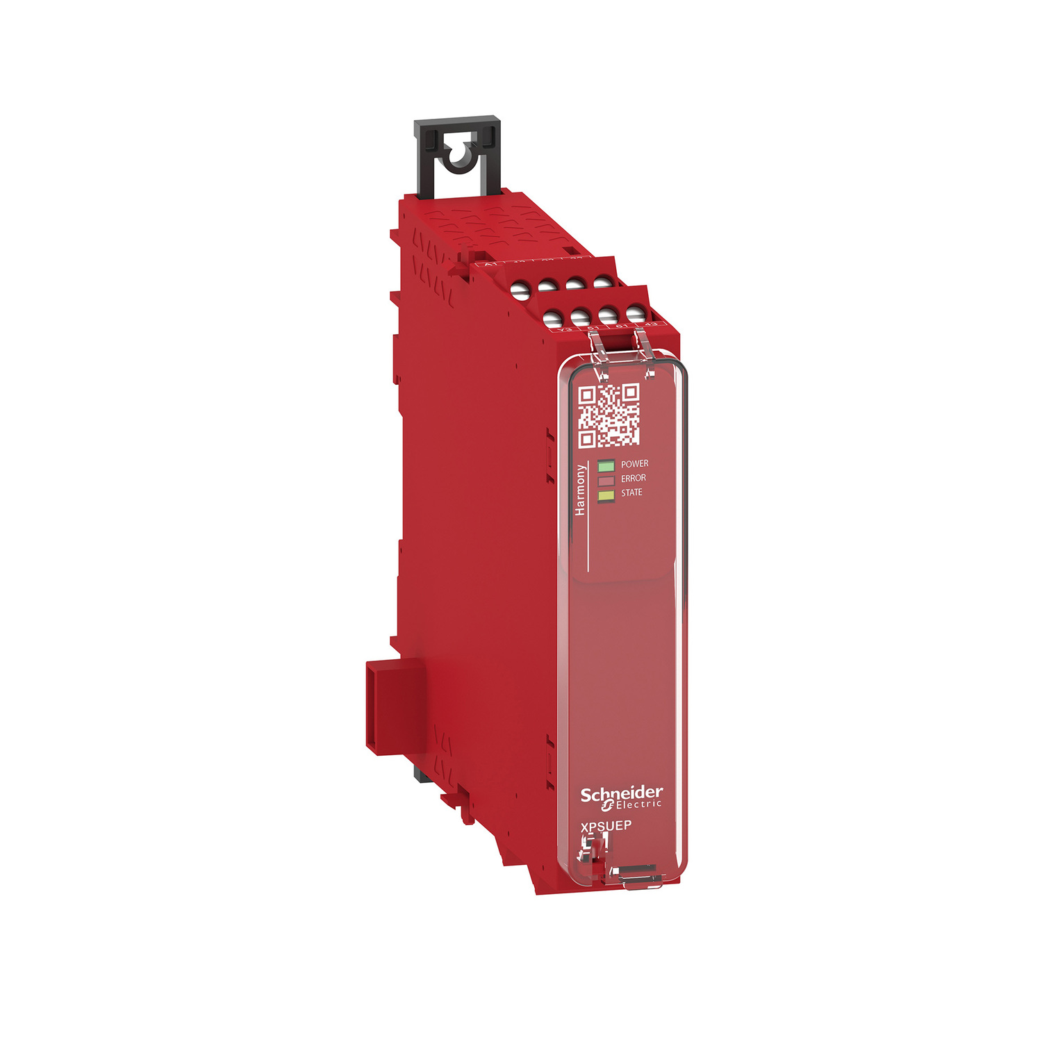 Це запобіжне реле призначене для збільшення кількості запобіжних контактів. Запобіжне реле живиться від 24 В змінного/постійного струму та оснащене клемною колодкою, що знімається гвинтом. Цей універсальний модуль безпеки містить попередньо визначені функції безпеки або функції безпеки, які вибираються за допомогою поворотних перемикачів. Це запобіжне реле містить розширену шину безпеки, 4 НО та 2 одинарних НС виходи безпеки. Максимальний рівень безпеки, досягнутий цим запобіжним реле, становить PLe/Категорія 4 відповідно до ISO 13849-1, SILCL 3 згідно з IEC 62061, SIL 3 згідно з IEC 61508. Це запобіжне реле важить 0,200 кг. Його розміри: 22,5 мм (ширина) x 120 мм (глибина) x 100 мм (висота). Це запобіжне реле важить 0,200 кг. Його розміри: 22,5 мм (ширина) x 120 мм (глибина) x 100 мм (висота). Це реле безпеки підходить для таких застосувань, як їжа та напої, підйом, обробка матеріалів, обробка матеріалів, упаковка. Це безпечне реле відповідає стандартам функціональної безпеки IEC60947-5-1, IEC61508-1/2/3, ISO13849-1, IEC62061, сертифіковано cULus, TÜV, EAC, CCC і має знак KC. XPSUEP можна використовувати лише з модулями безпеки XPSUAF, XPSUAK, XPSUAT, XPSUDN і XPSUS. Це реле монтується на симетричну DIN-рейку 35 мм. Реле безпеки Harmony XPS Basic і Universal є першим вибором для легкого керування окремими функціями безпеки, як правило, у машинах простої та середньої складності. Harmony XPS Universal є першим вибором для широкого спектру простих і середньо-складних машин.
