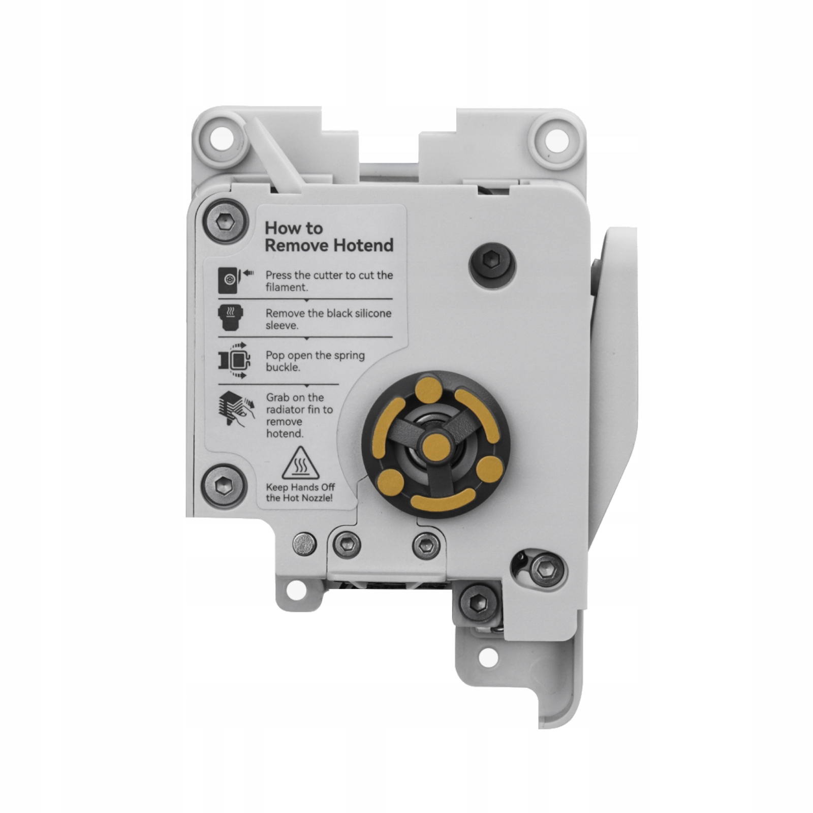 ✔ Оригінальний модуль Існує модуля добре відомої лабораторії Бамбу. Екранда виготовлена зі загартованої сталі, яка дає гомілку. Сталеві шестерні забезпечують збільшення екструзії, запобігають ковзанню та підвищенню стійкості до стирання. Ці передачі дозволяють підтримувати екструдер -блок для міцних структурних волокон, таких як нейлон з вуглецевим волокном та нейлоном зі скляним волокном.