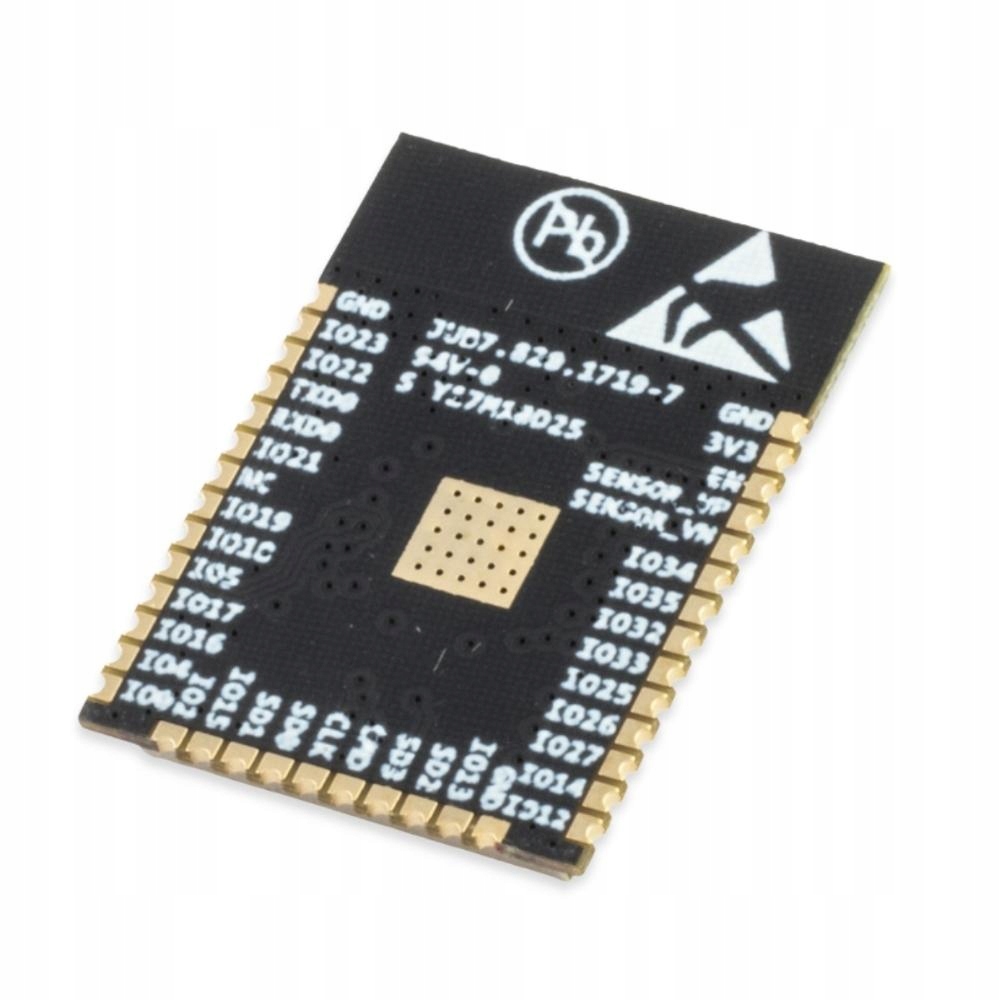 ESP32 — це потужний 32-розрядний мікроконтролер. Найважливіші контакти мікроконтролера розміщені на краю модуля. Доступні GPIO, I2C, UART, SPI, ADC, PWM, SDIO.