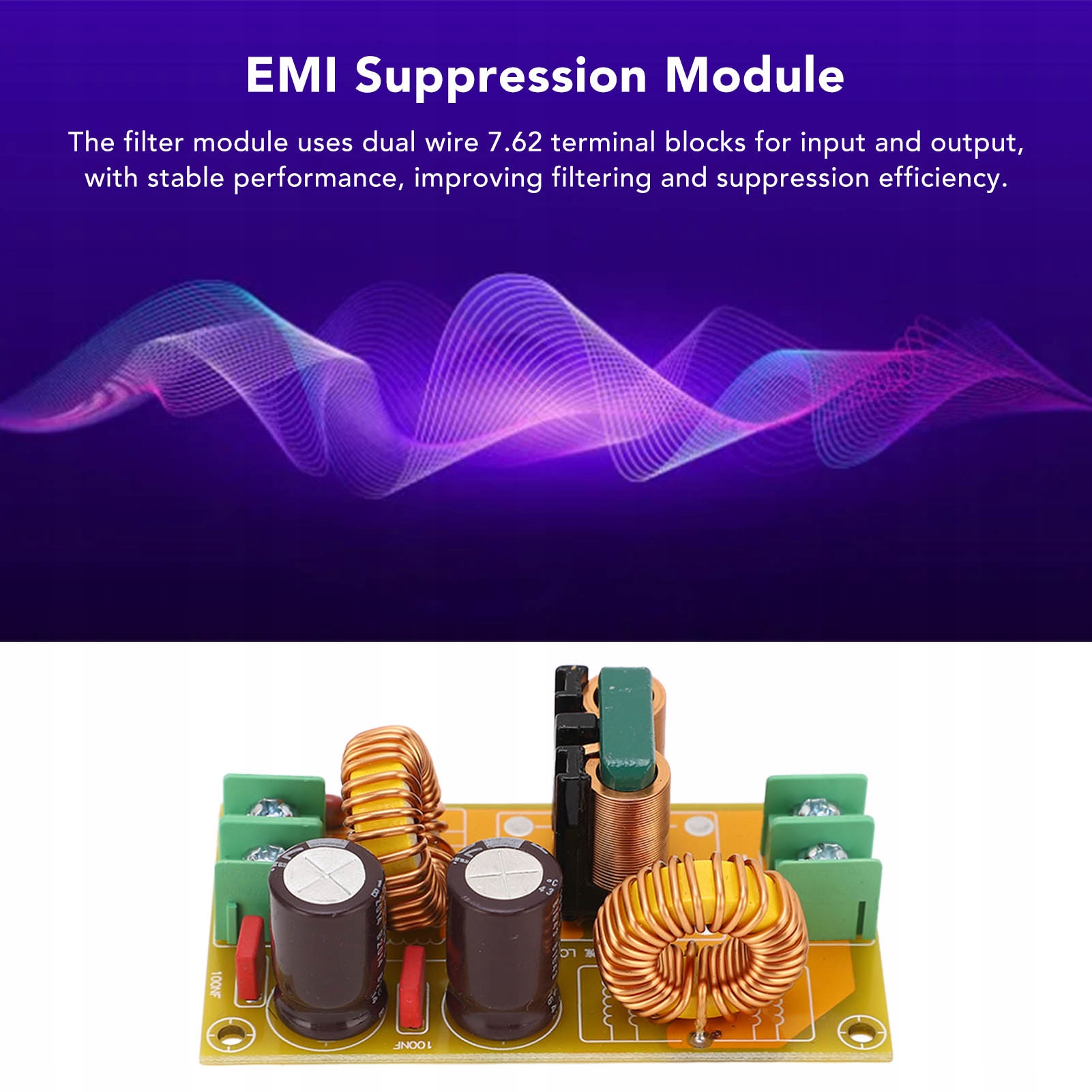 4. DUAL WIRE TERMINAL: Модуль фільтра використовує двопровідні клеми 7.62 для входу та виходу, що забезпечує стабільну роботу, покращуючи фільтрацію та ефективність затухання.