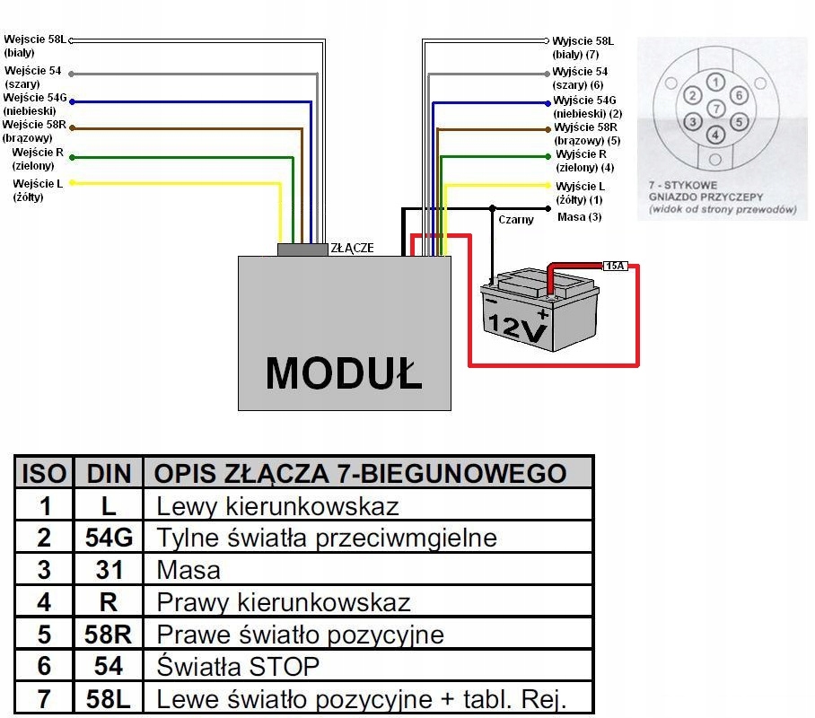 - Вхід "54G" (синій кабель)- це задні туманні світильники/шпилька 2 гнізда причепа