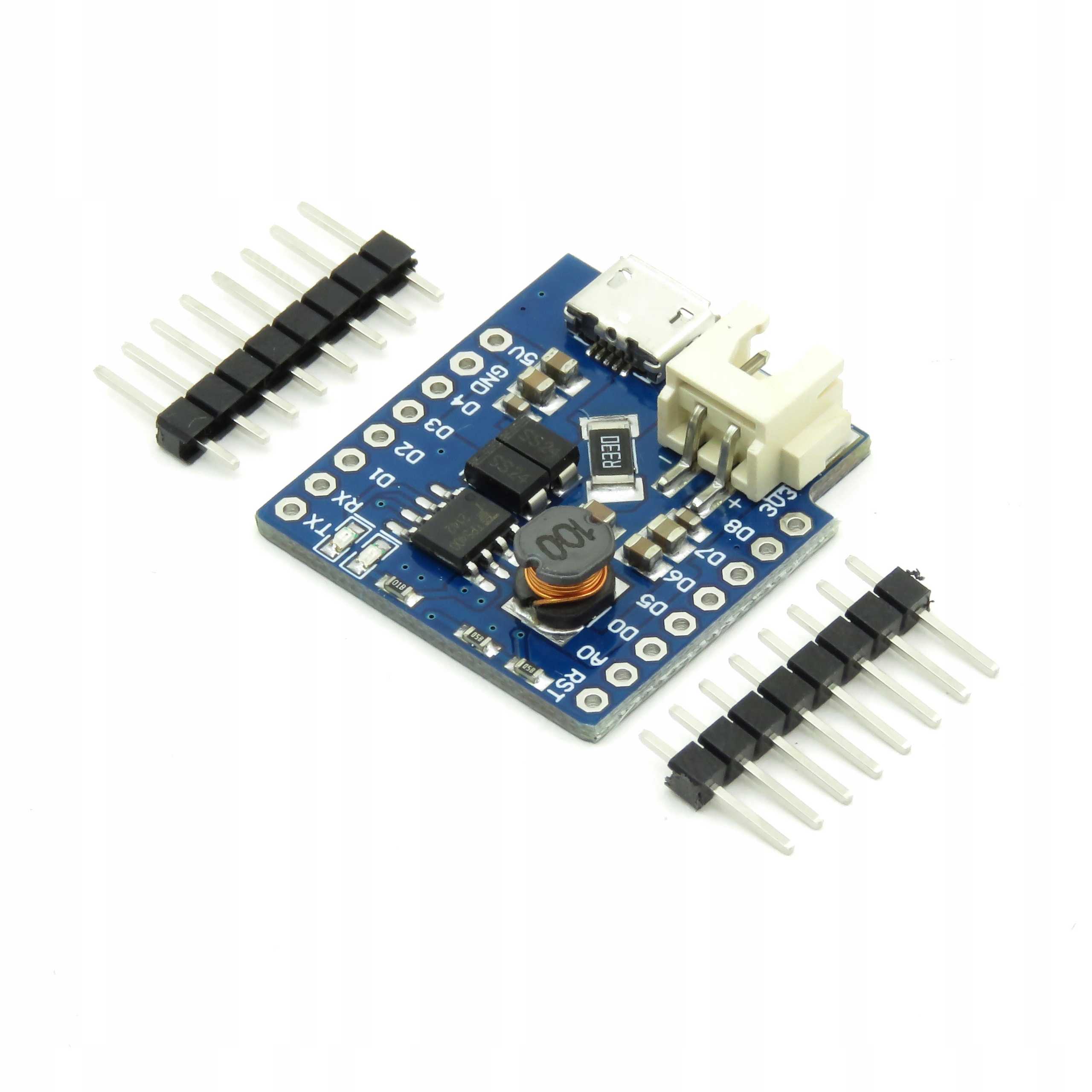 Модуль живлення (щит) із схемою зарядки акумулятора LiPo, призначений для плат Wemos D1 Mini. Дозволяє легко підключати джерело живлення у вигляді батареї через роз'єм JST XH2.54 з можливістю зарядки через роз'єм microUSB. Це дає користувачеві можливість створювати портативні пристрої на основі Wemos D1 Mini.