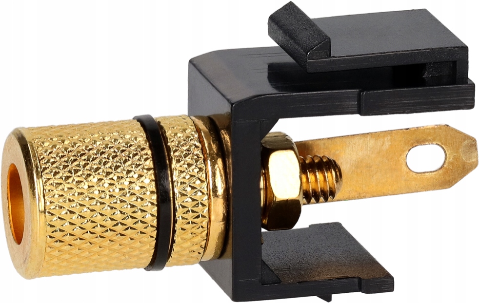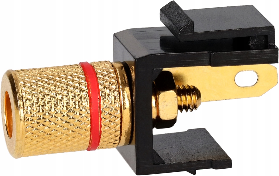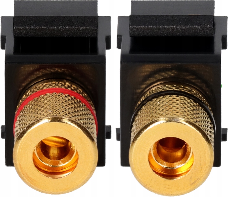 Модуль Keystone із роз’ємом типу «банан», який використовується в установках гучномовців. Роз'єм позолочений, що робить його стійким до окислення і забезпечує хороший контакт з підключеним штекером або кабелем. Конструкція роз’єму дозволяє підключати кабелі гучномовців різними способами: