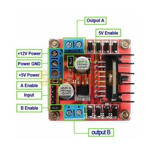 L298n - це контролер двигуна з великою потужністю. Це дозволяє керувати двома двигунами постійного струму або одним двофазним кроковим двигуном.