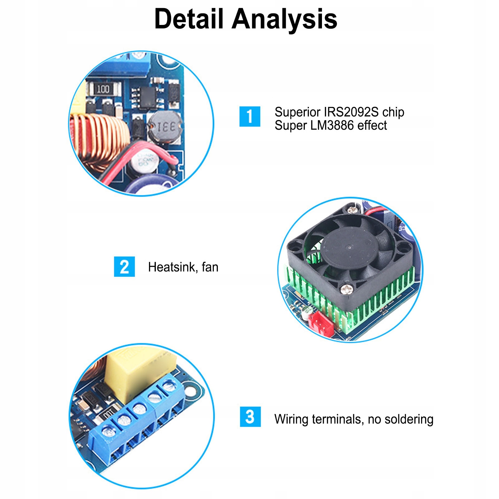 5. Матеріал преміум-класу: плата підсилювача потужності IRS2092S виготовлена з матеріалу PCB преміум-класу, має високу щільність, є безпечним і надійним, має захист від старіння та має тривалий термін служби.