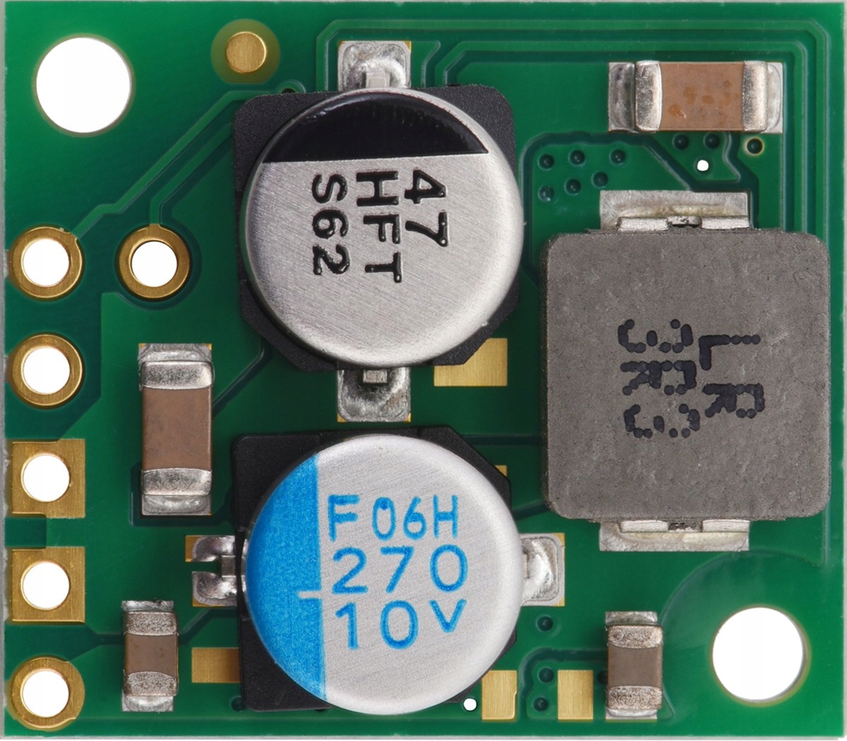 Модуль понижуючого перетворювача DC-DC. Він забезпечує постійну вихідну напругу 7,5 В і може живитися напругою в діапазоні від 7,5 до 45 В. Він має вбудоване обмеження вихідного струму, а в безперервному режимі має ефективність до 3 А залежно від вхідного сигналу. напруги.