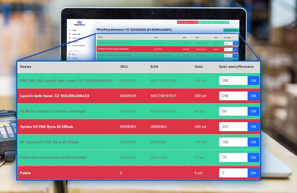 Stockwave - Перевірка поставок - це модуль, який змінить спосіб прийому вашої компанії. Створений для компаній, які хочуть покращити контроль поставок та покращити якість складських робіт. Stockwave підтримує процес перевірки, порівнює кількість від закупівельних документів та відсканованих поставок, фіксує помилки та генерує детальні звіти.