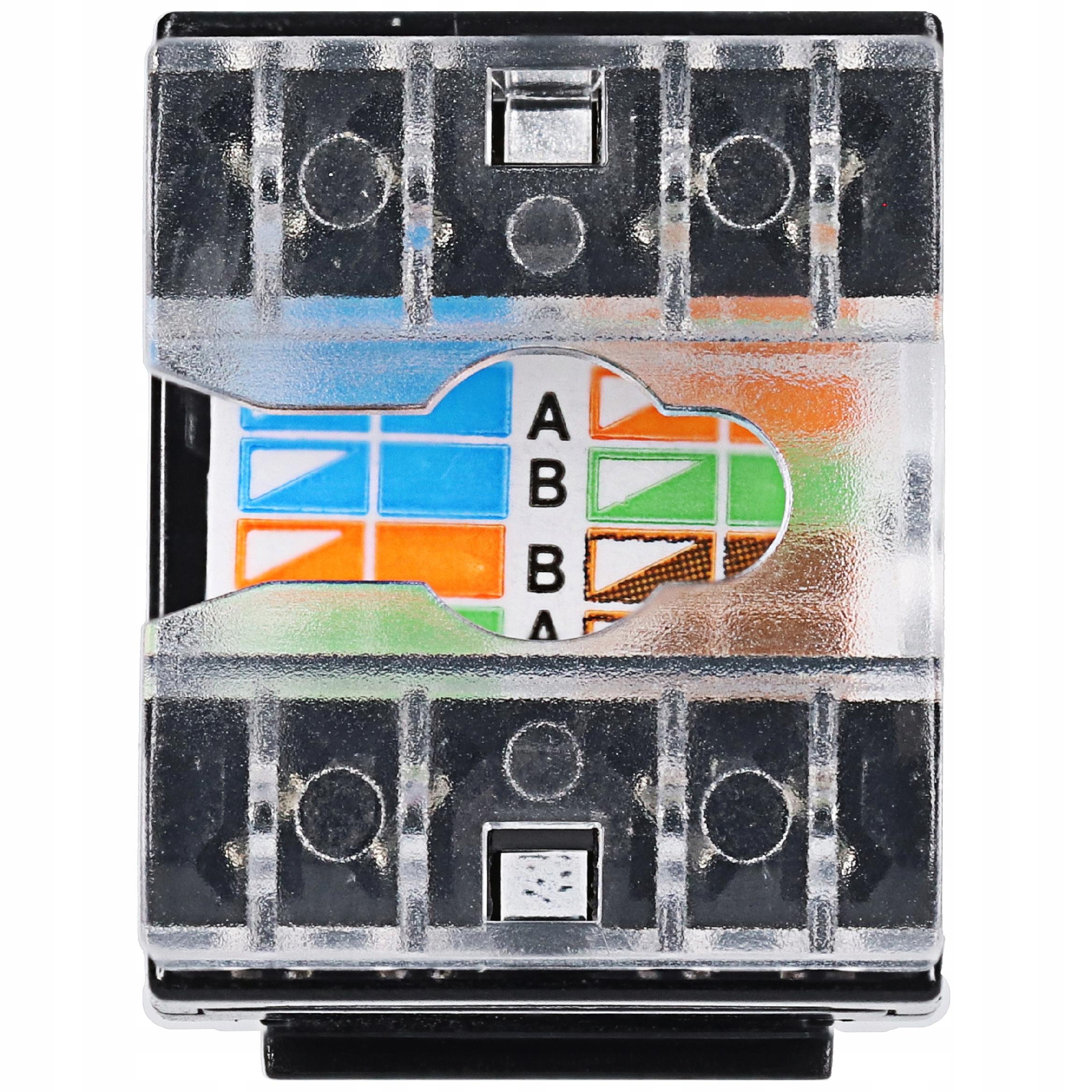 Пластиковий корпус підходить для встановлення в патч-панелі та розетки, що відповідають стандарту Keystone.