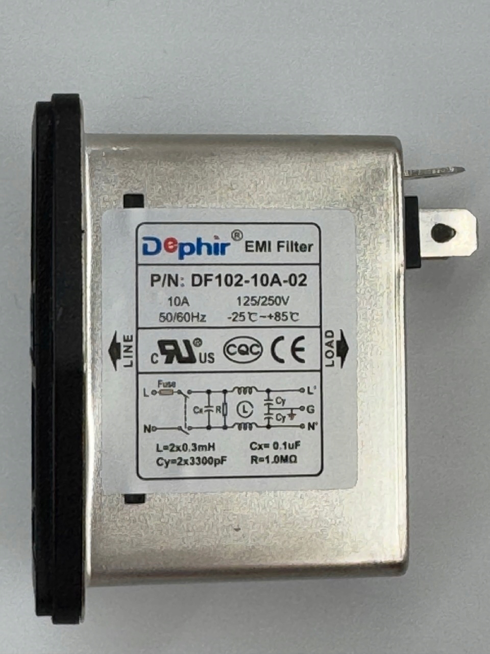 - однофазний фільтр EMI: зменшує перешкоди та покращує якість джерела живлення