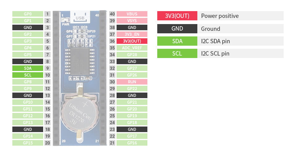 - Модуль розширення RTC, призначений для Raspberry Pi Pico.