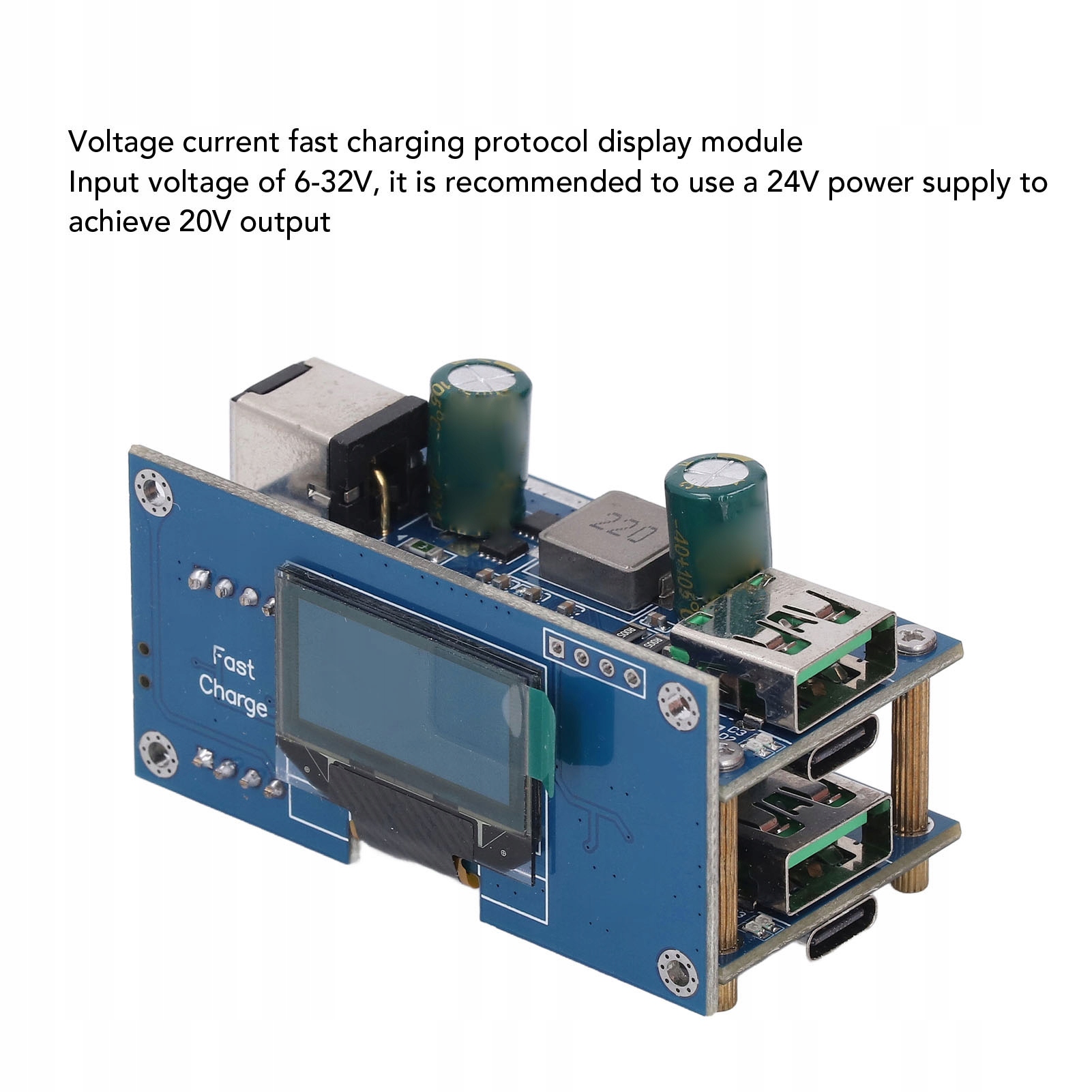 2. [Широкий діапазон напруги] Цей модуль швидкої зарядки працює з вхідною напругою від 6 до 32 В, лише підтримуючи зменшення напруги, запропонований використовувати 24 В живлення для досягнення 20 В. VOOC тощо