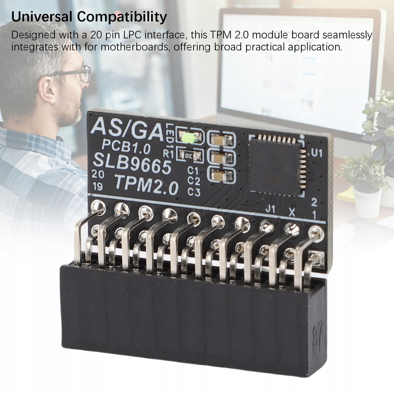 2. Універсальна сумісність: розроблена з 20-контактним інтерфейсом LPC, ця модульна плата TPM 2.0 легко інтегрується з материнськими платами, пропонуючи широке практичне застосування.