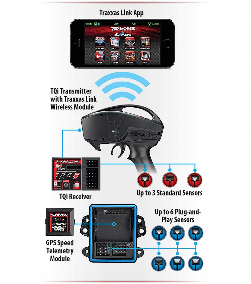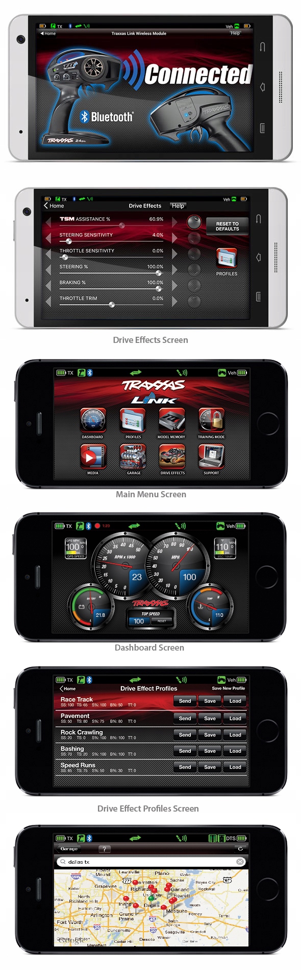 Traxxas Link — це потужний інструмент налаштування моделі. Ваш смартфон підключається до системи LinkTraxxas™ і створює інтуїтивно зрозумілий кольоровий графічний інтерфейс користувача з високою роздільною здатністю, який дає вам можливість оптимізувати свою радіосистему для максимального контролю автомобіля.