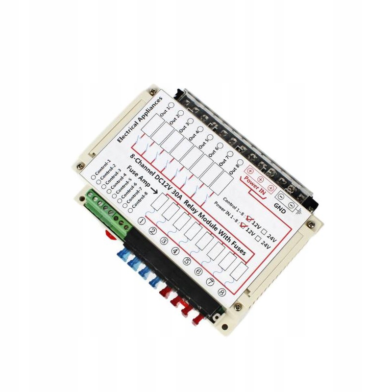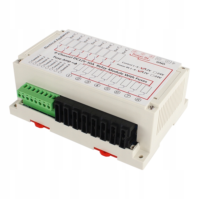 Модуль управління електричним обладнанням для будинку, човна, причіп, 12В, 30а, 8-канали, DIN