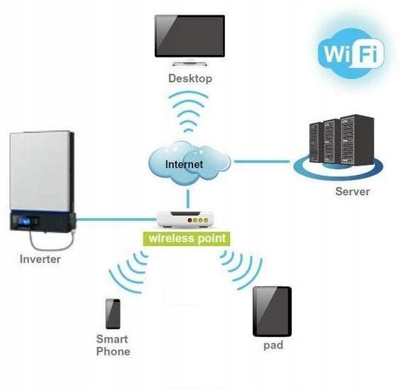 Він функціонує як комунікаційний шлюз, який працює між інвертором і сервером моніторингу. Модуль підключається до інвертора через кабель RS232, збираючи робочі дані пристрою. Зв’язок із сервером відбувається через локальну мережу WiFi через маршрутизатор локальної мережі користувача.