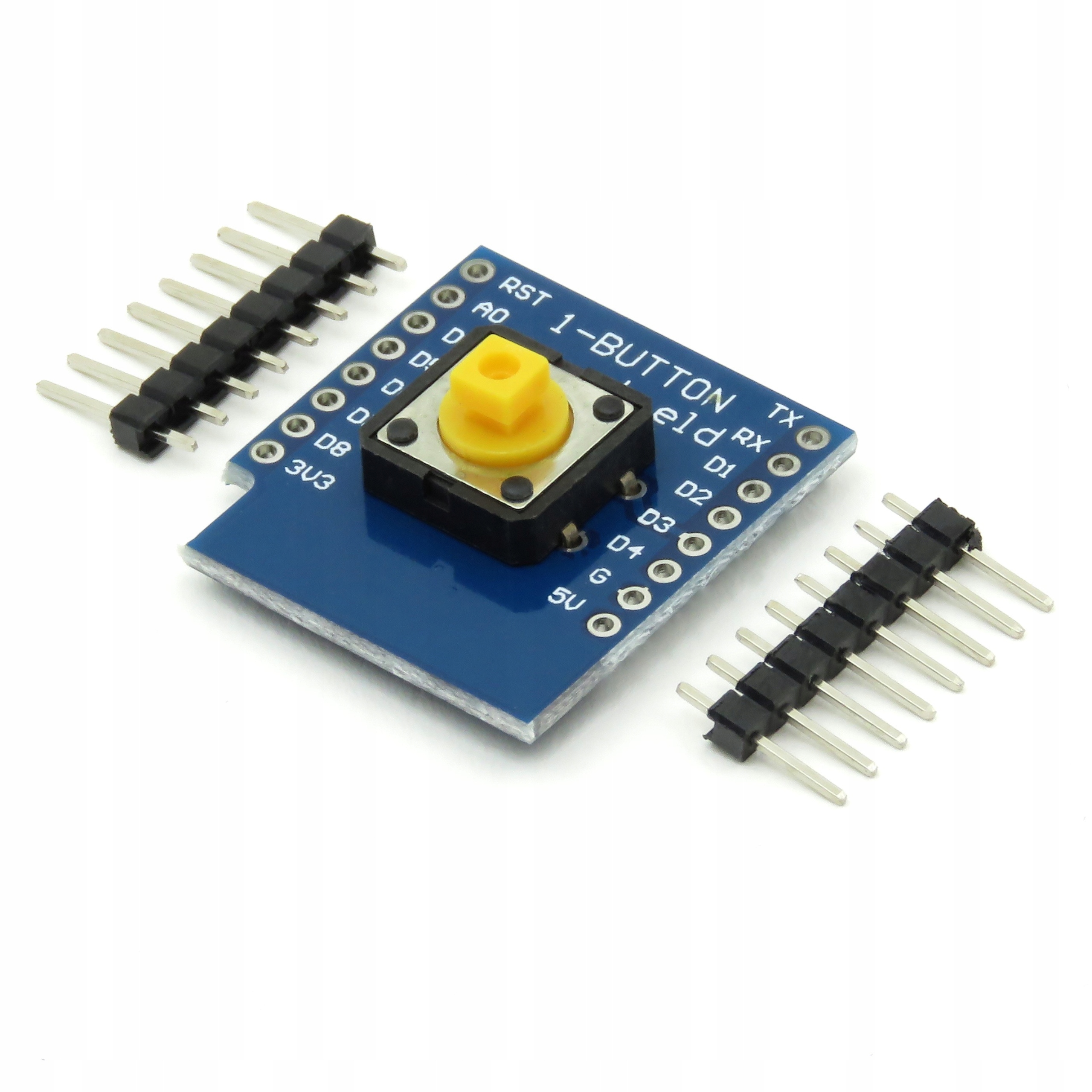 Модуль з кнопкою для плитки Wemos D1 Mini. Це дозволяє додати простий інтерфейс користувача до вашого проекту, наприклад, для запуску передачі або перемикання режиму роботи.